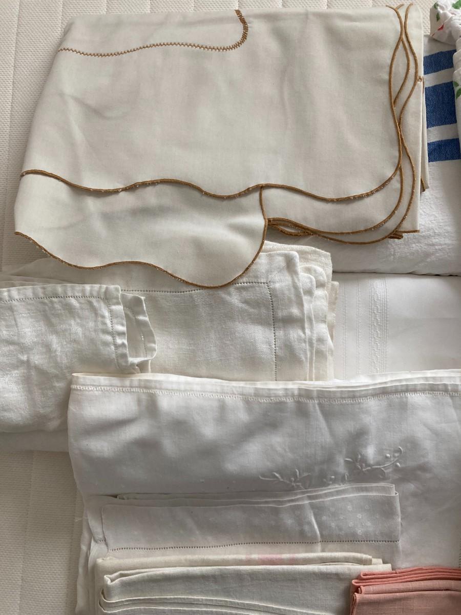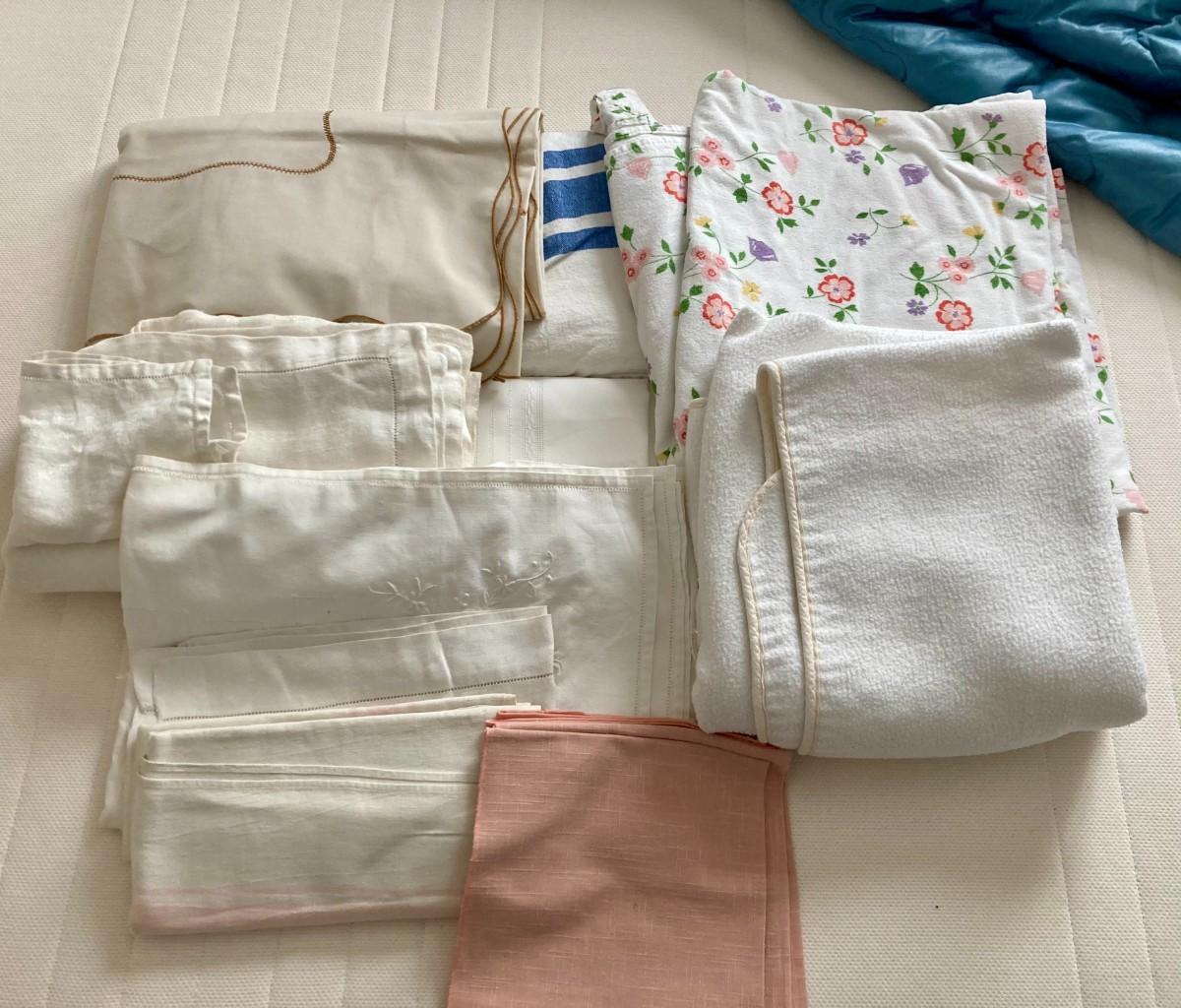Large lot of Vintage Tablecloths and Blankets. Nice condition