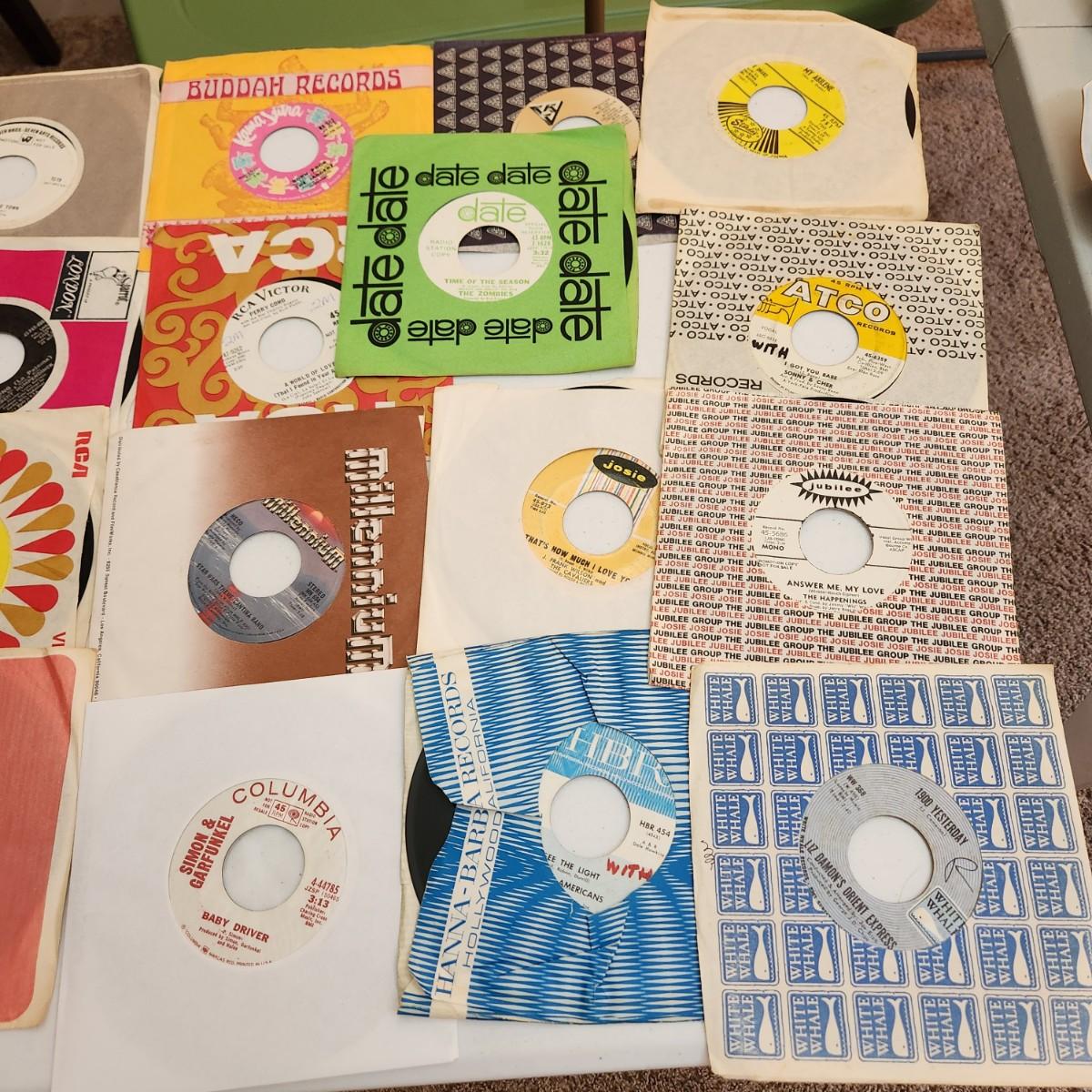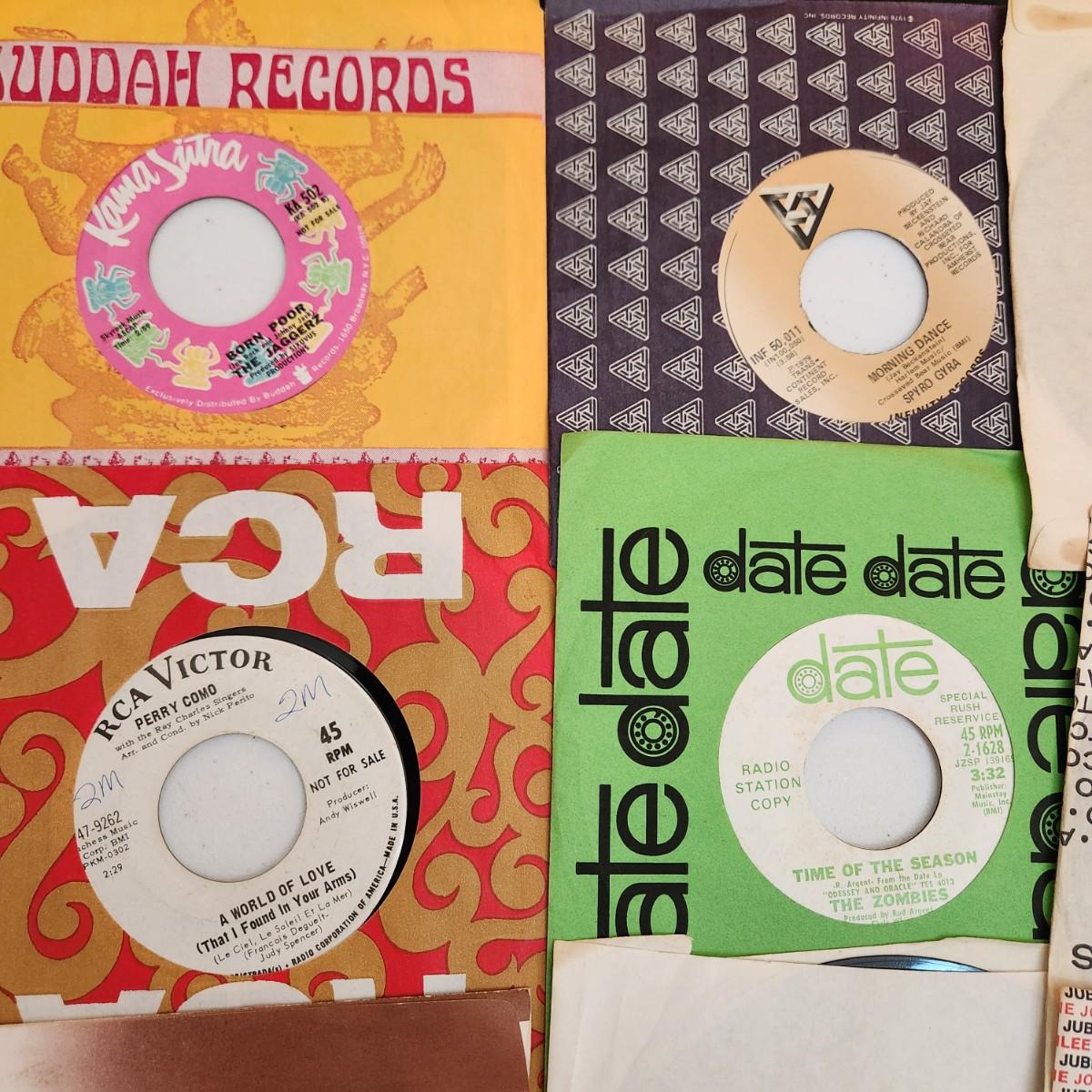 Lot of Vinyl Records 45 RPM Records Happenings Sonny & Cher Zombies Uncle Jack Mocedades
