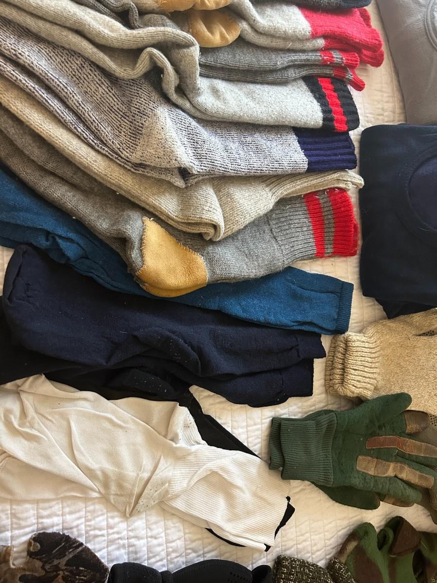 Stay warm with this lot of wool socks, thermals, hats & gloves