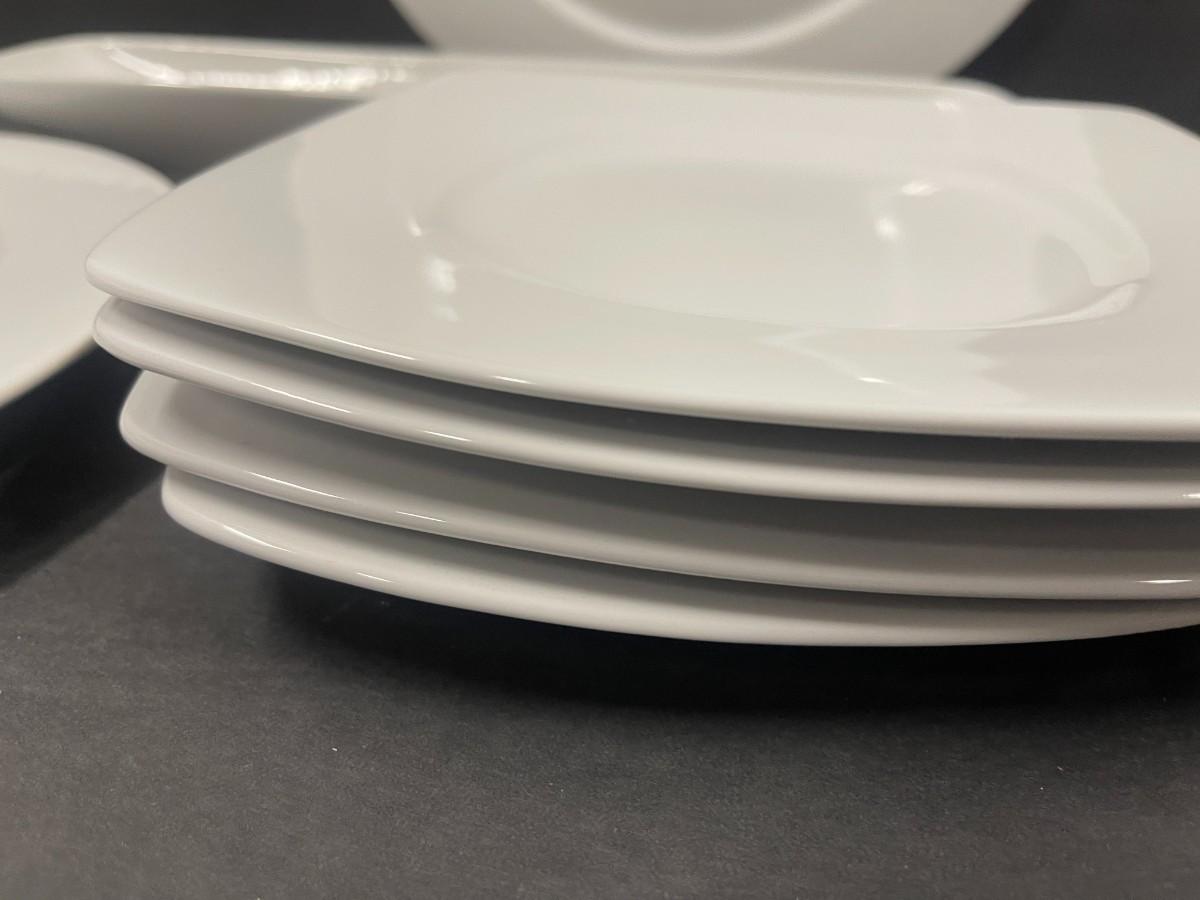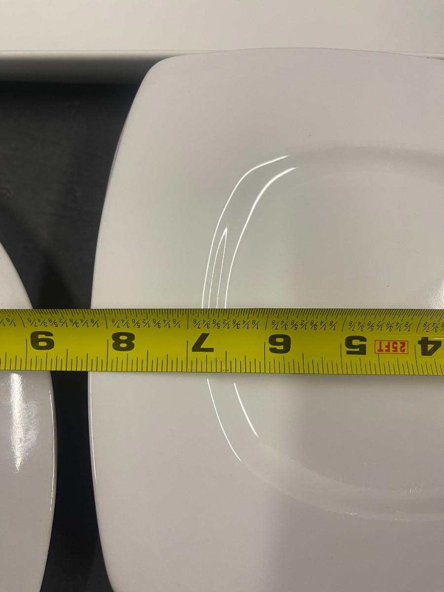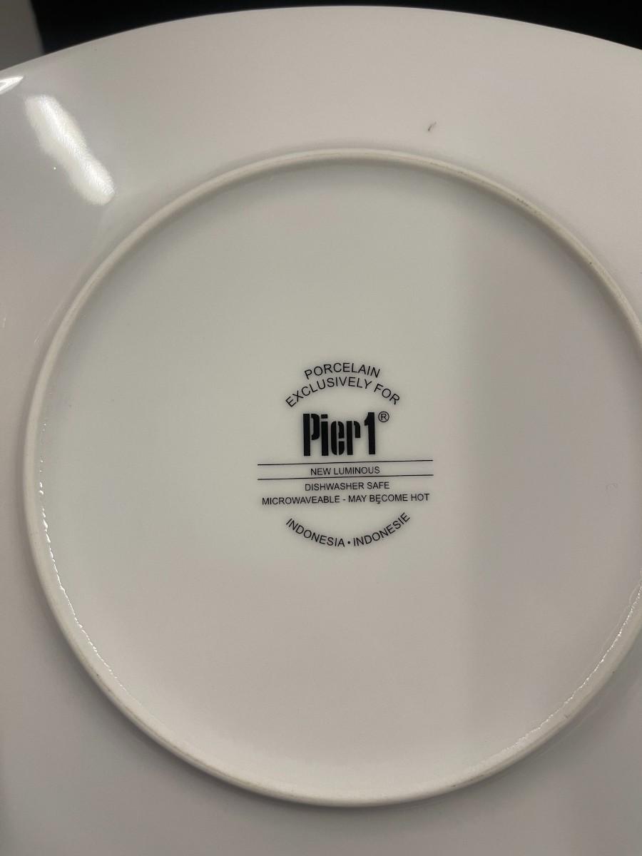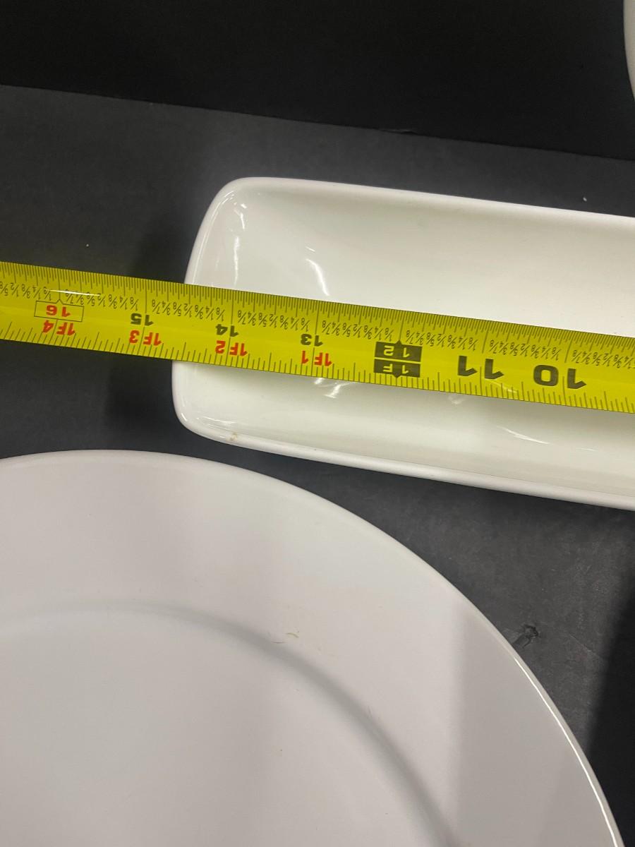 Includes 4 square Pier One plates, 2 Epoch white chargers/platters, one white olive dish