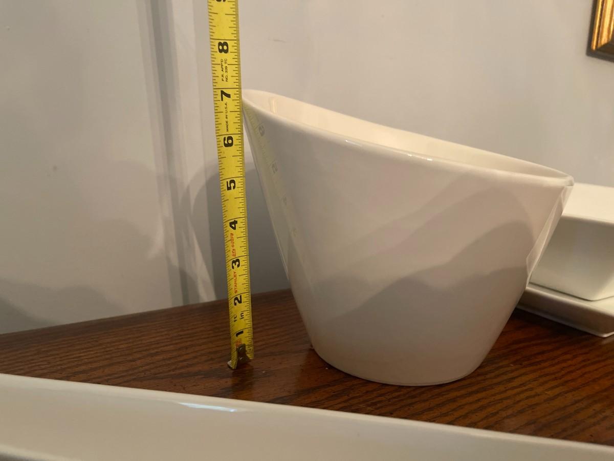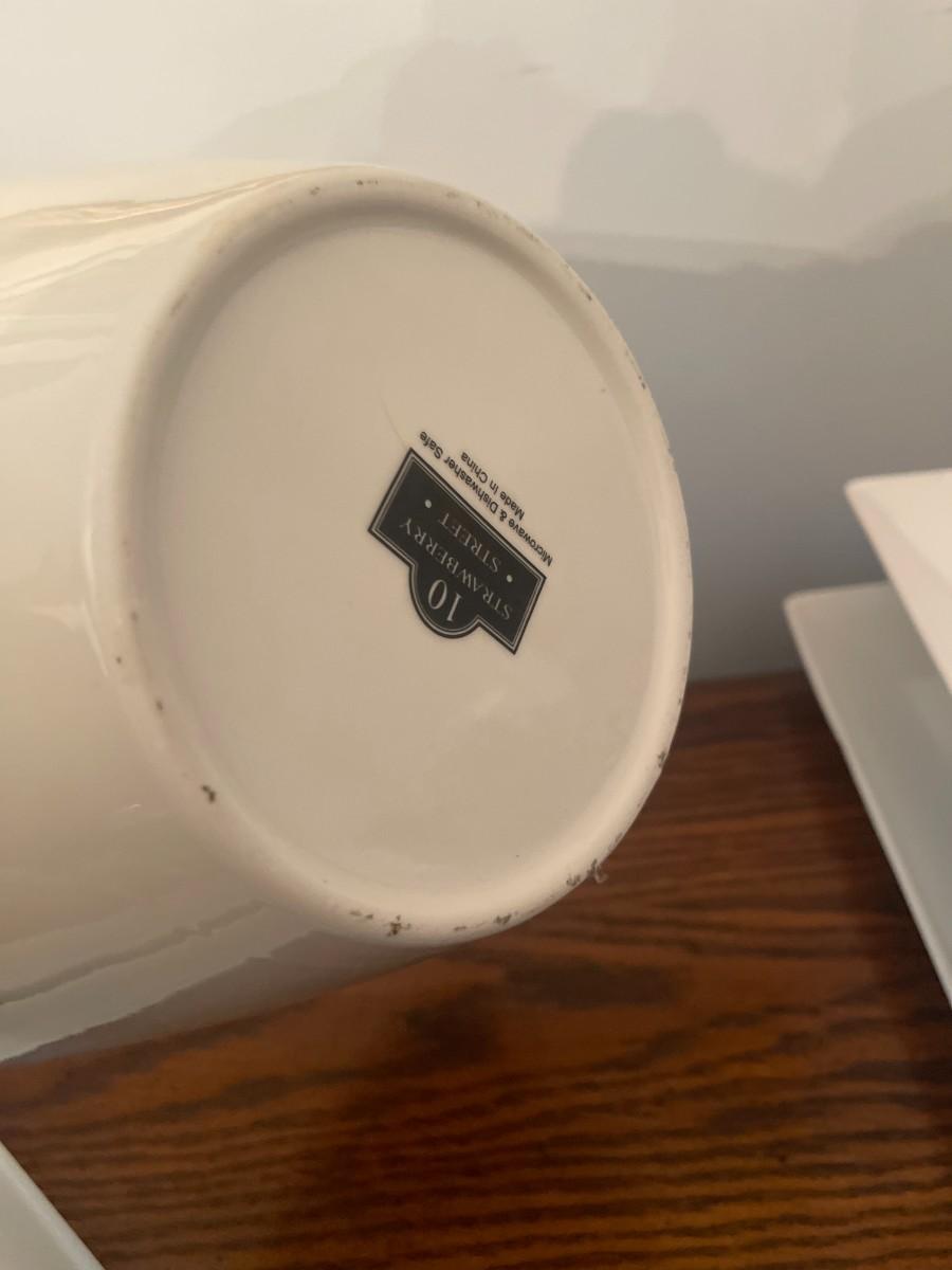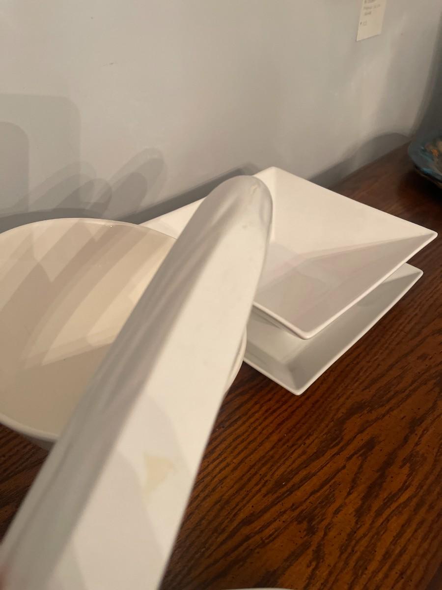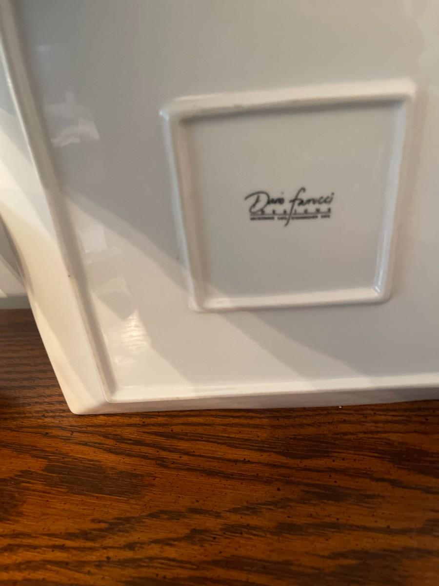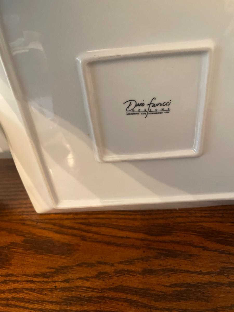 Lot of White Porcelain Serving Pieces: Includes Round serving bowl, square bowl, square platter and 2 olive dishes.