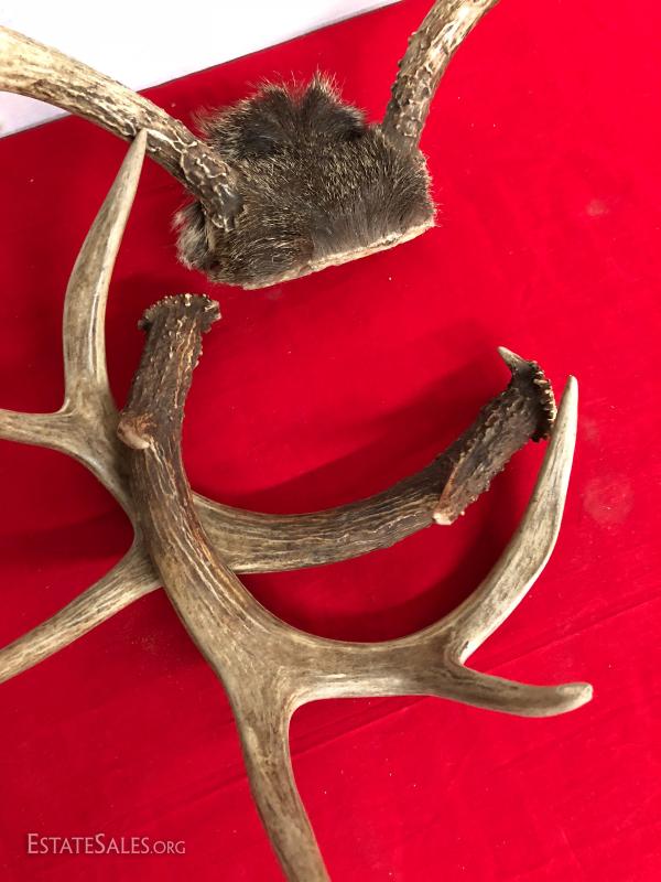 Lot of deer antlers one pair of sheds, one set with skullcap.