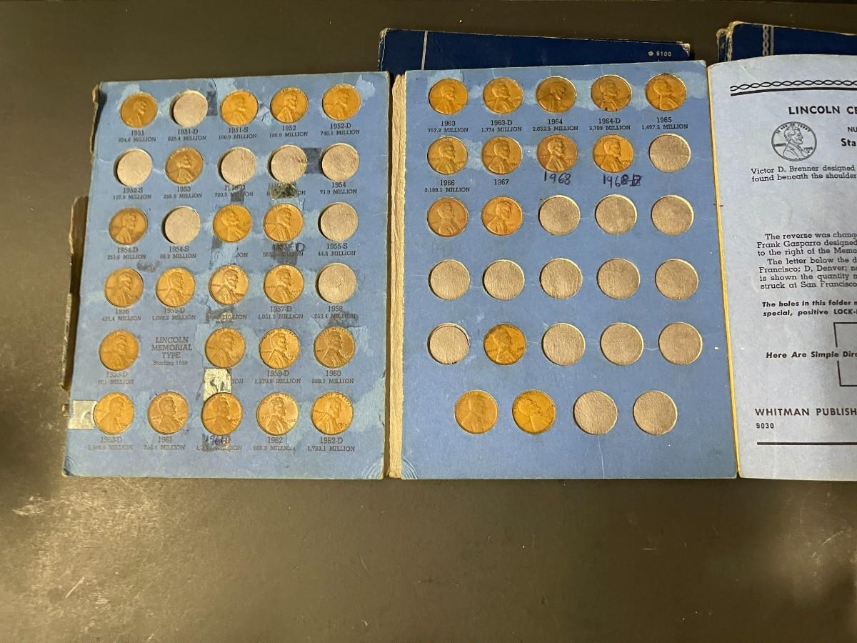 Lot of Whitman Coin Books, One Unidentified, One A Year Cent Collection 1909 to date & Lincoln Cents 1909-1940, all incomplete and in varying conditions.