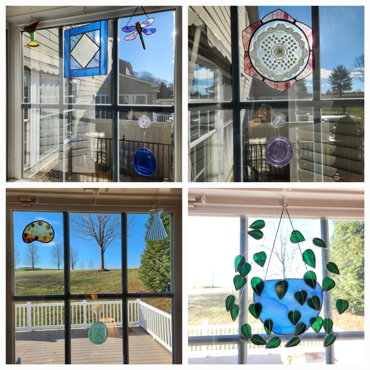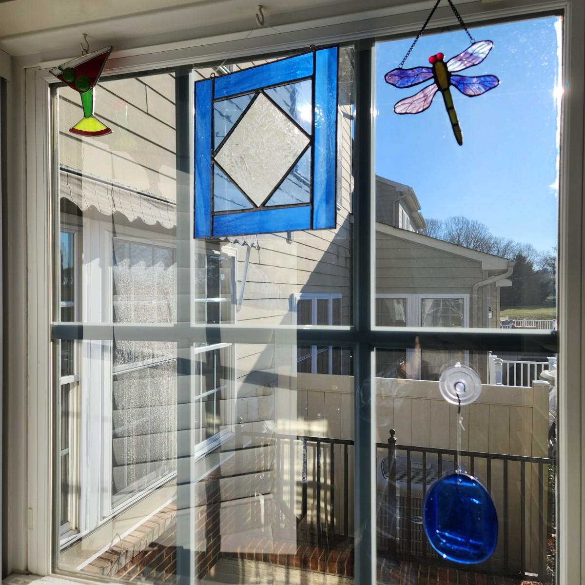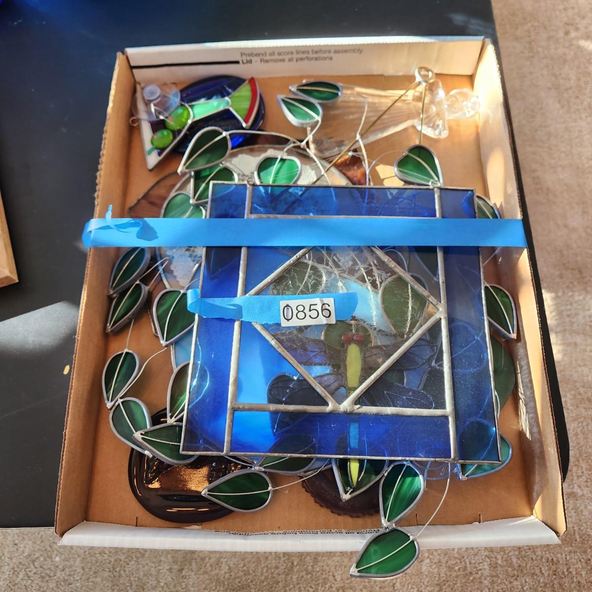 Lot of Window Hanging Stained Glass Decor Dragonfly ,Cocktail Glass, leaves, and others