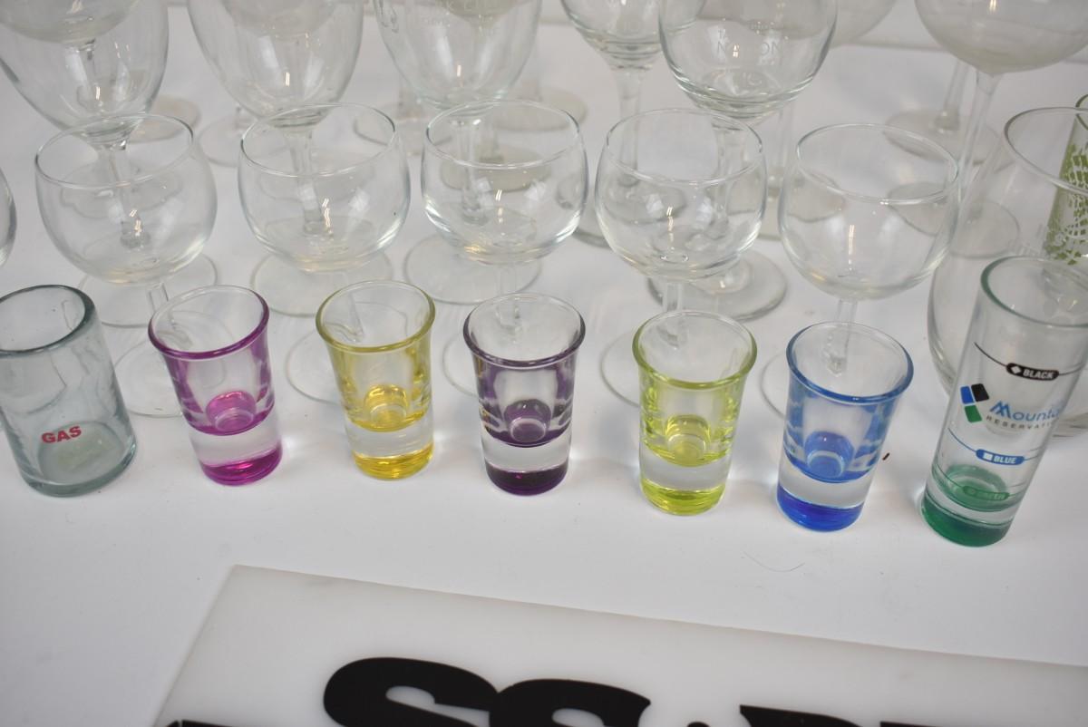Lot of Wine, Champagne, Shot, Whiskey Glasses, etc