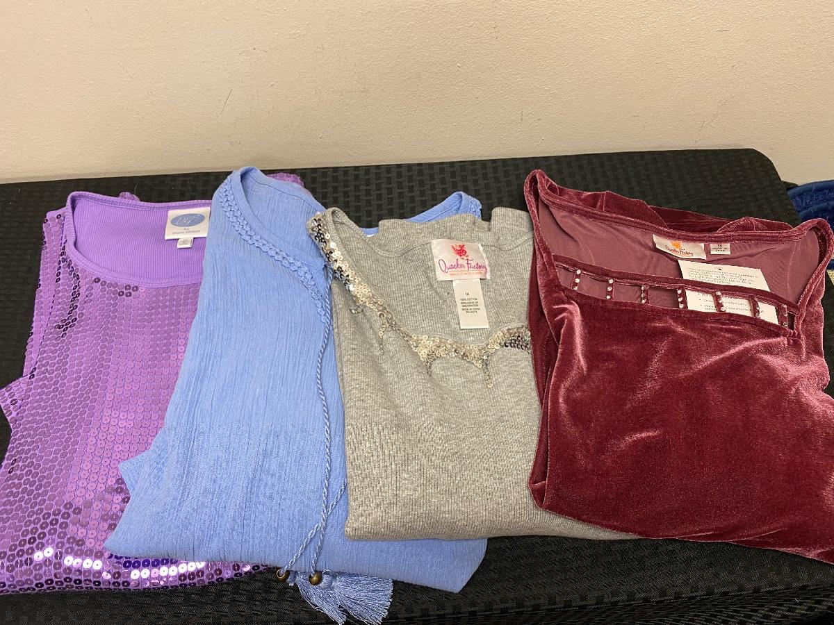 Lot of Women 1X & XL Tops, there are no rips or tears to any of the tops and is in good useable condition. Check pictures for more details and for sizing.