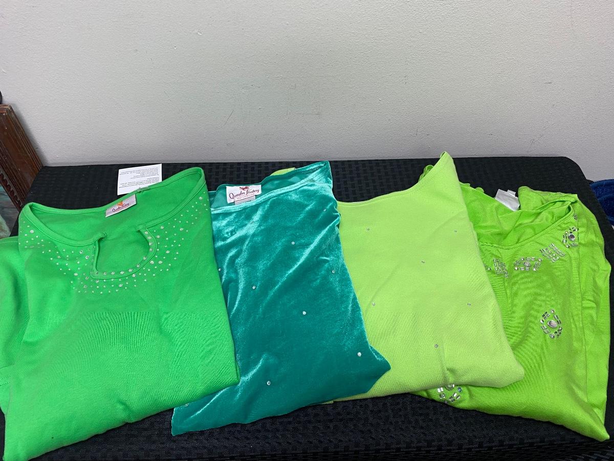 Lot of Womens 1X and Extra Large Green Tone Tops and Shirts, there are no rips or tears to any of the tops and is in good wearable condition. Check pictures for more details and for sizing.