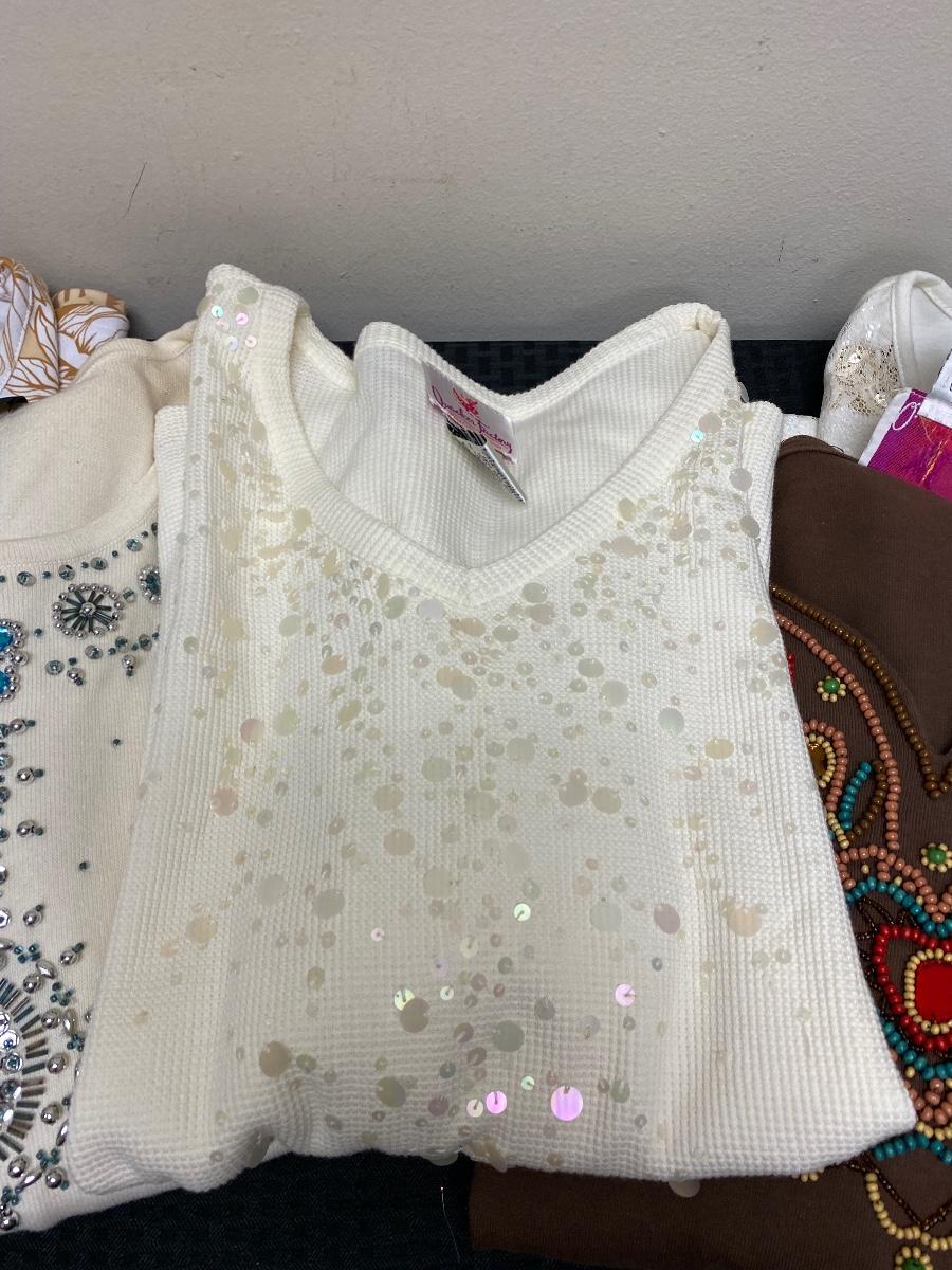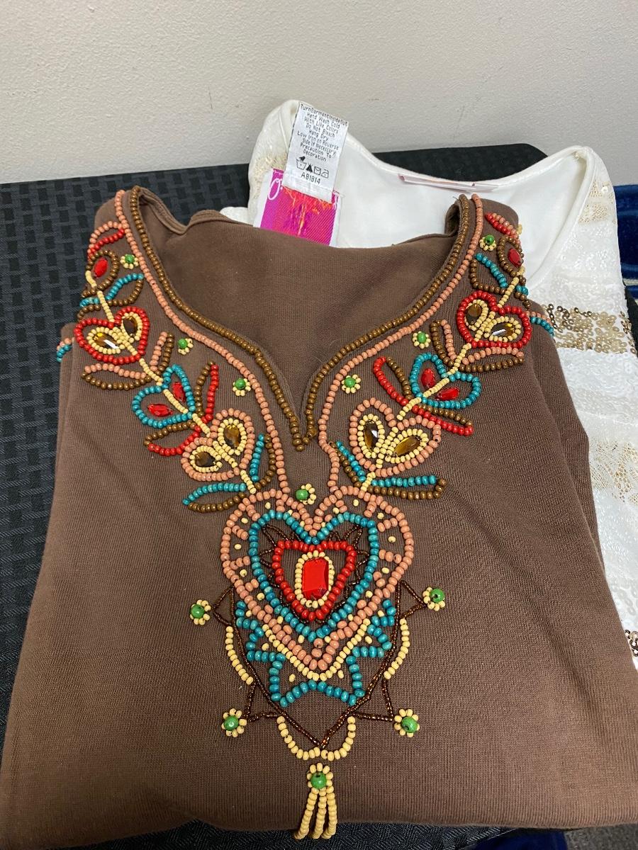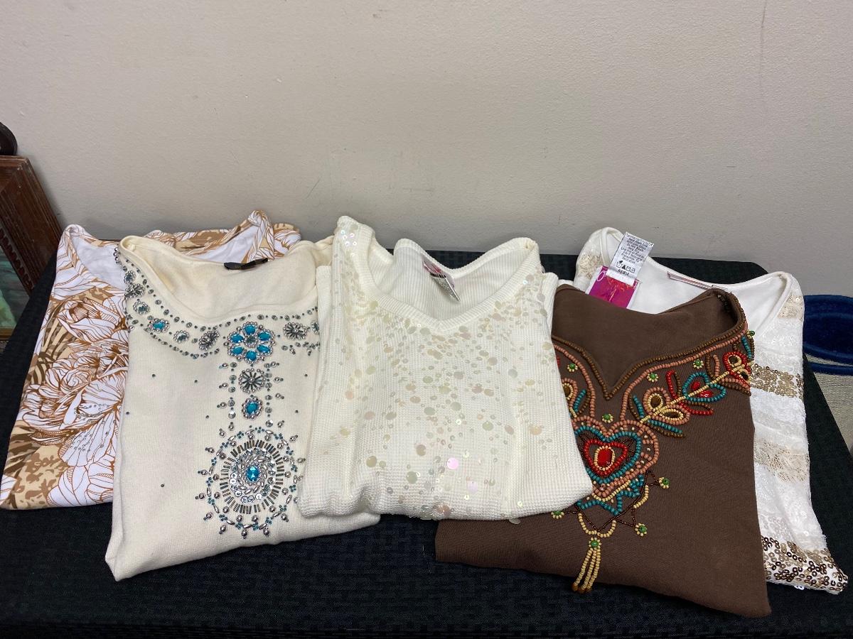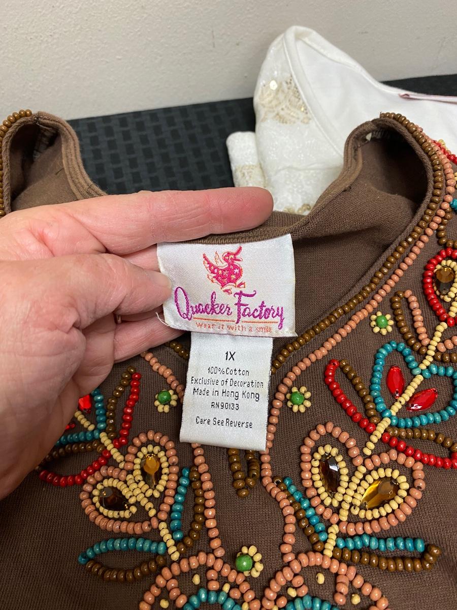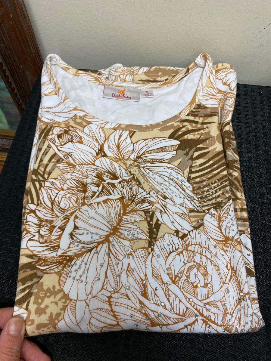 Lot of Womens 1X Brown & White Tone Tops, there are no rips or tears to any of the pieces of clothing and is in good wearable condition. Check pictures for more details and for sizing.