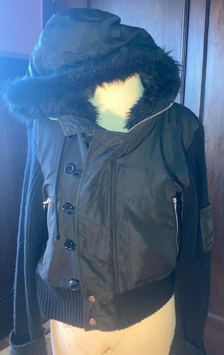 group of clothing consisting of jackets, sweaters and tops .all size mediim