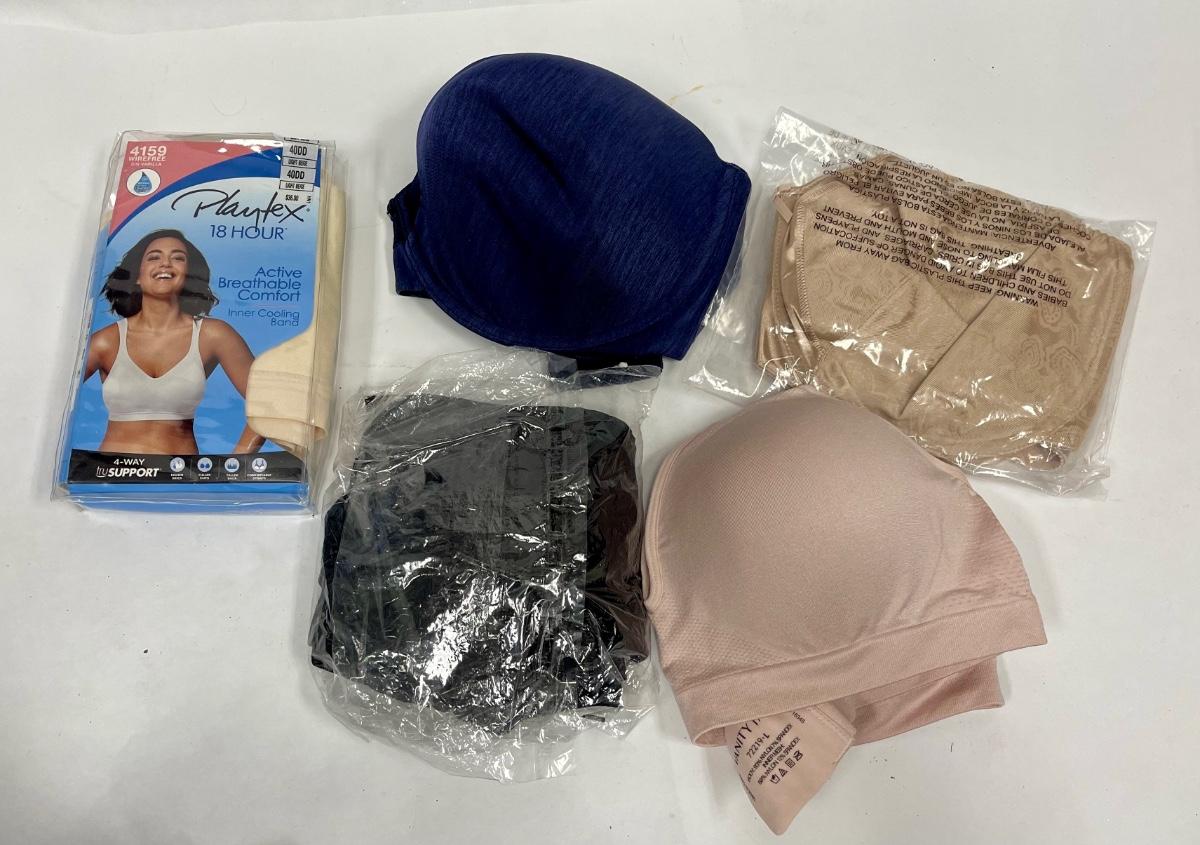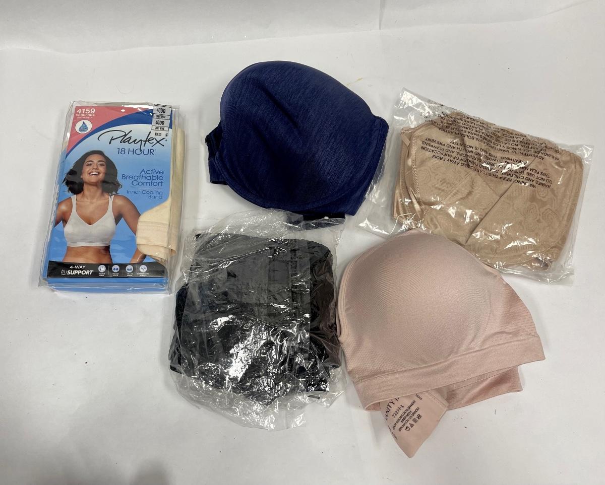Lot of womans bras. New or like new condition. The two in plastic are size large, The others are 40DD.