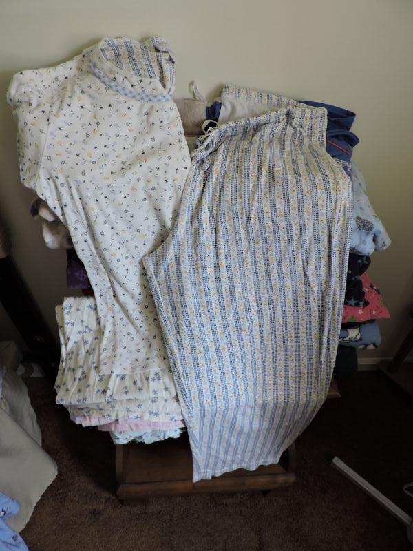 8 sets of matching pants and tops (5 fleece), 3 nightgowns, 5 pair of sleep pants. **Please read Terms and Conditions before placing a bid. Pick up is Thursday, August 15, 2019 from 4pm to 7pm or Sunday, August 18 from 11am-2pm in Mullica Hill. All sales are final. All sales are as is, where is. Please review all photos. Any props included in photos are not included in listing. All measurements are approximate.