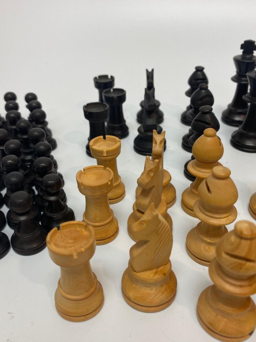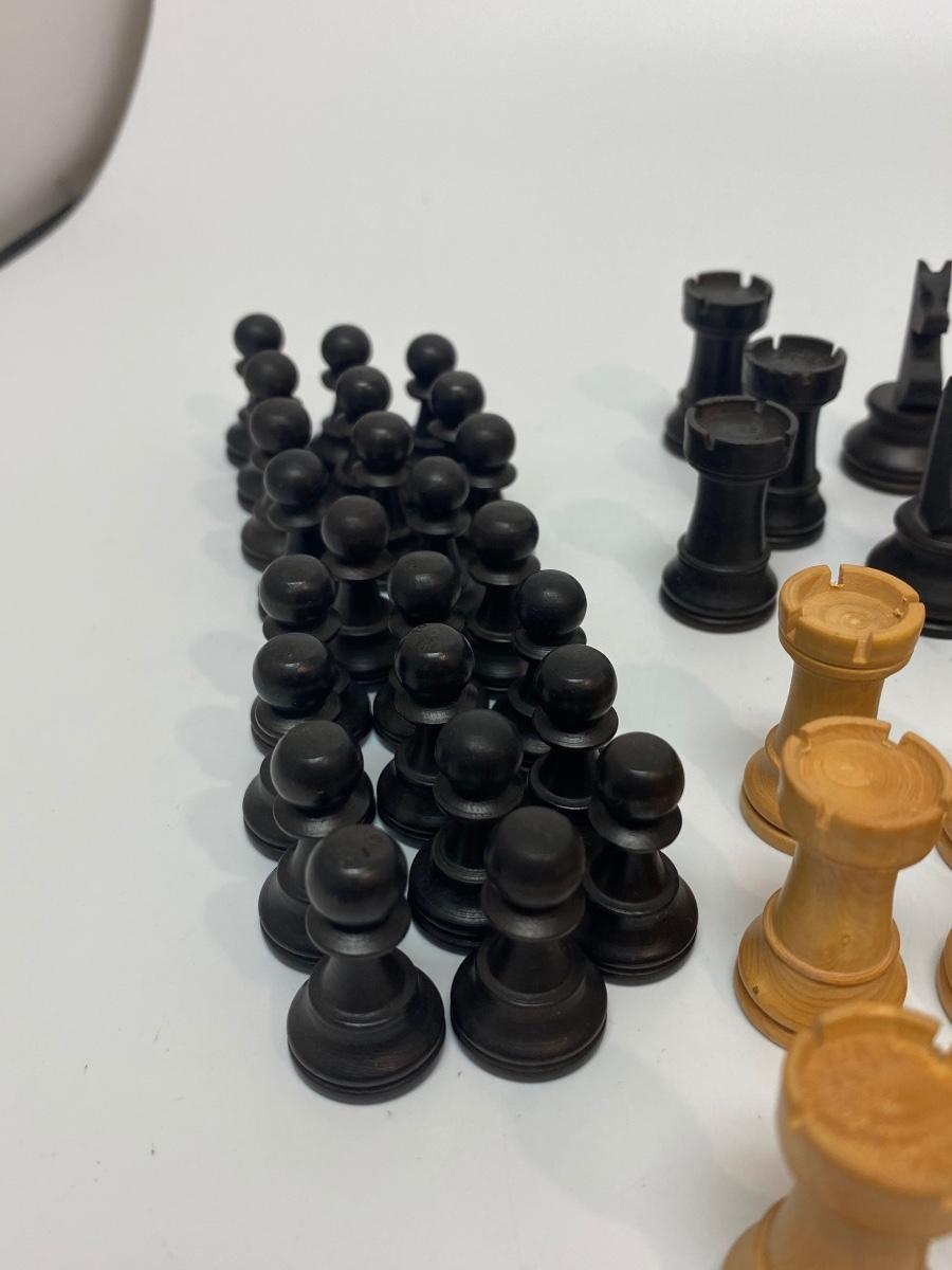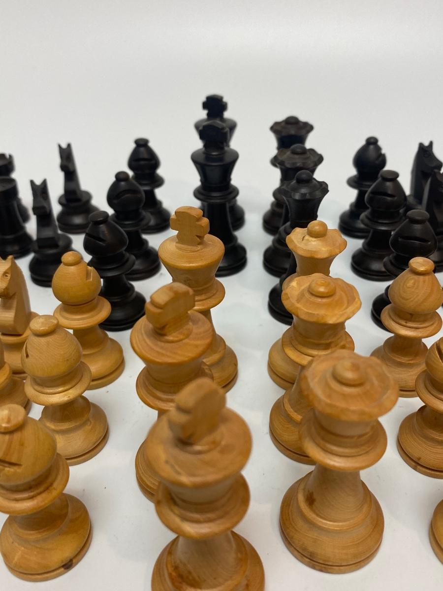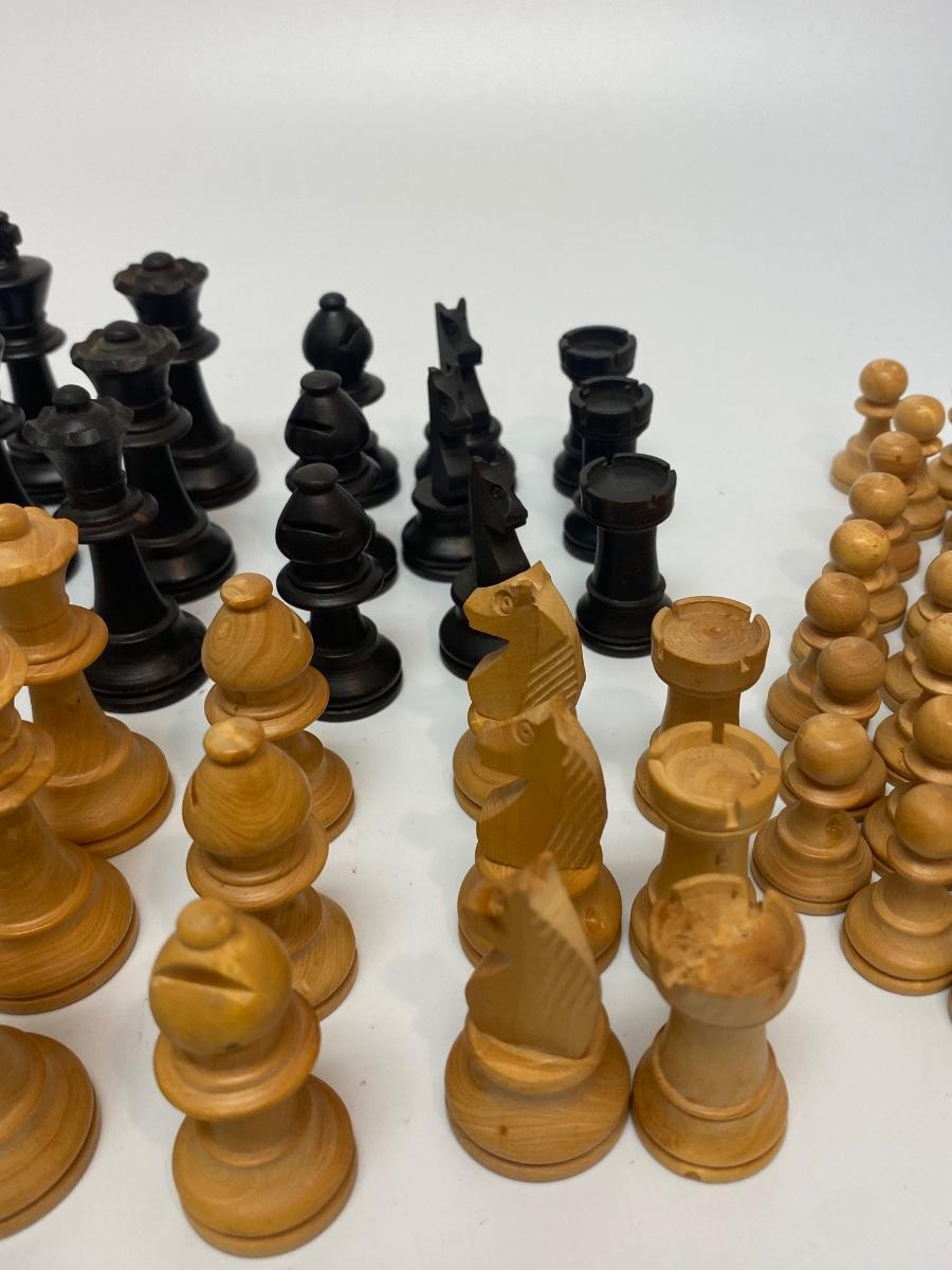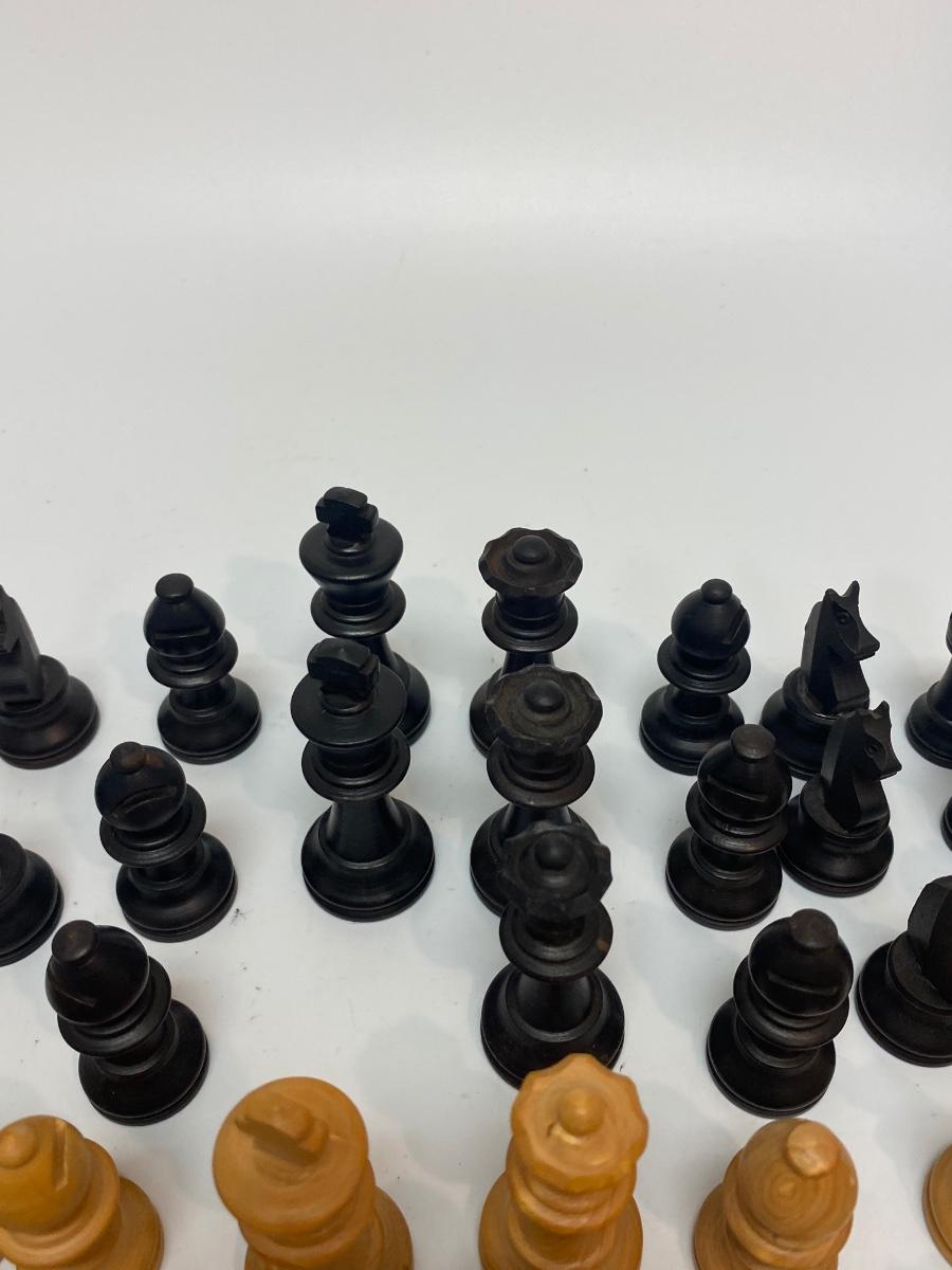 Lor of carved wood chess pieces. Almost 3 complete sets. Great for playing chess or craft projects. Lightweight, under 3" size.