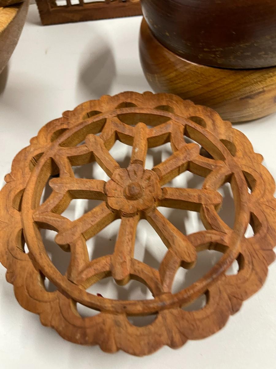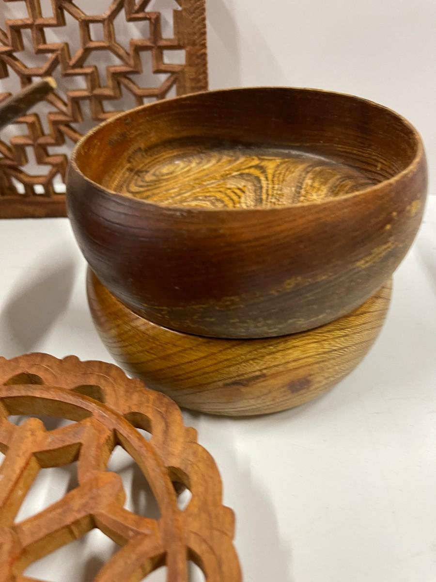 Lot of Wooden Bowls and Trivets