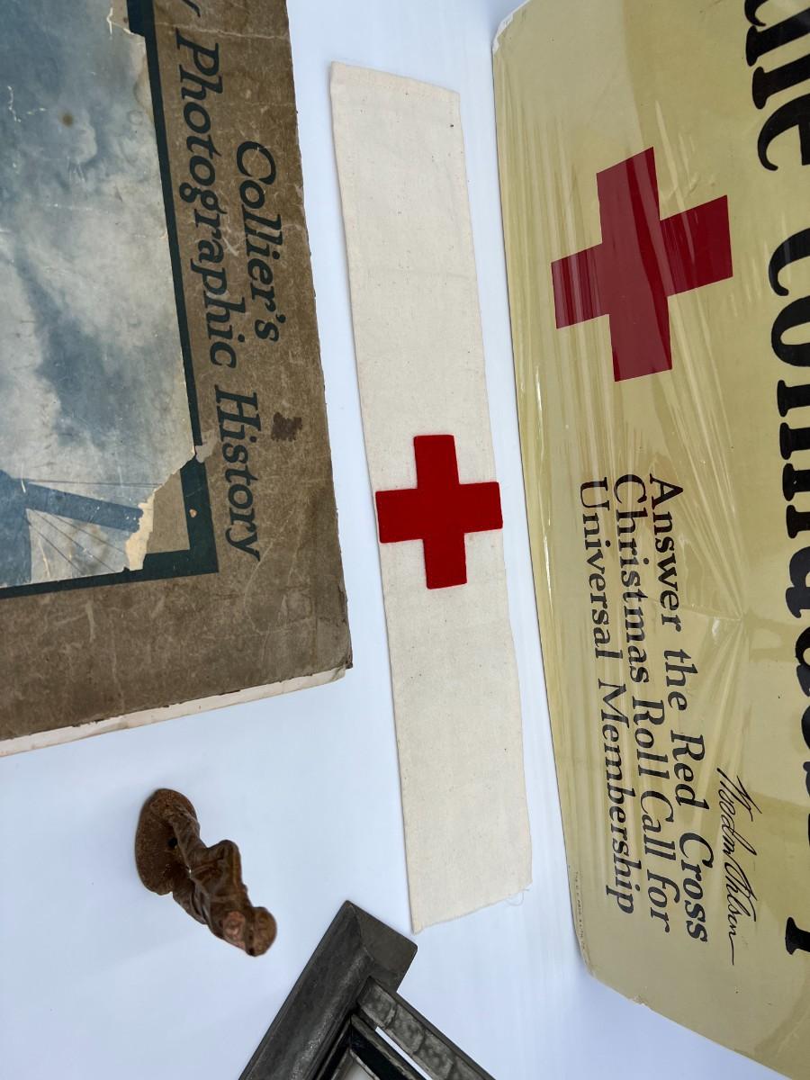 Lot of WW1 Red Cross Poster and Arm Band Pins and Ephemera