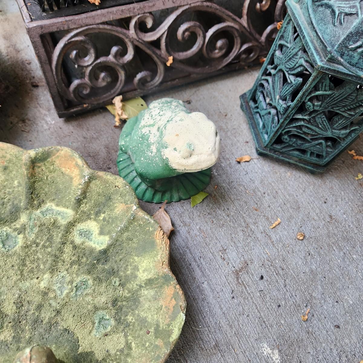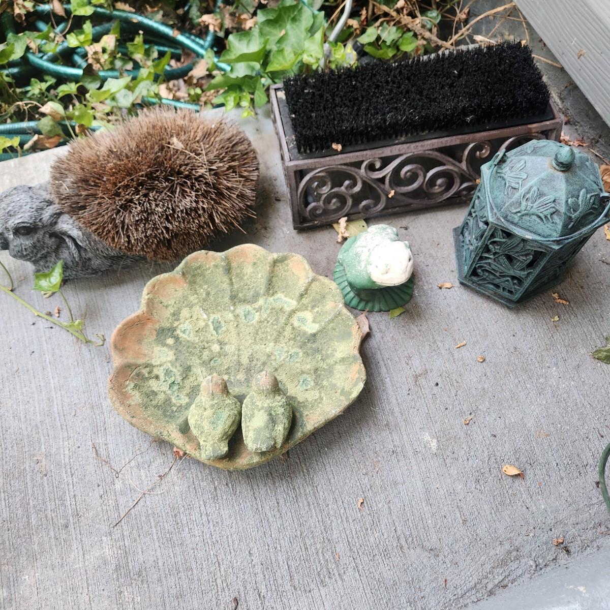 Lot of Yard Art & Boot Shoe Brushes Bird Bath Candle Holder