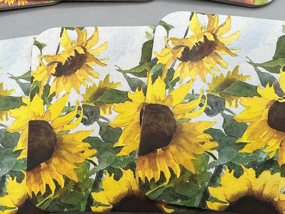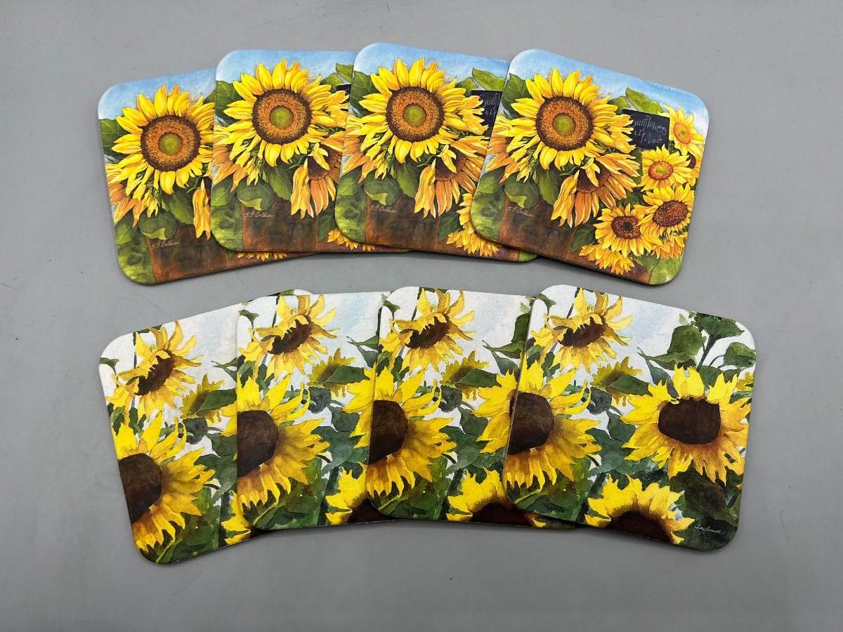 Lot of Yellow Sunflowers Warm Springtime Cork Drink Coasters