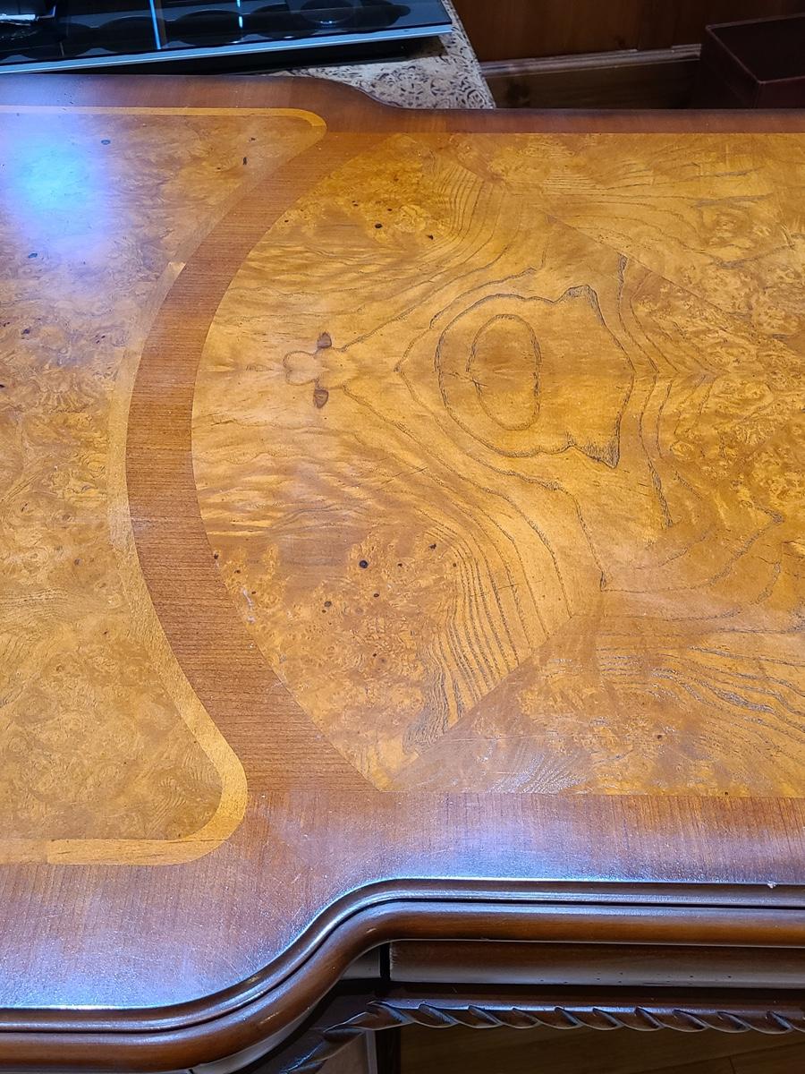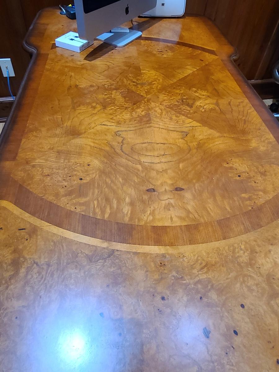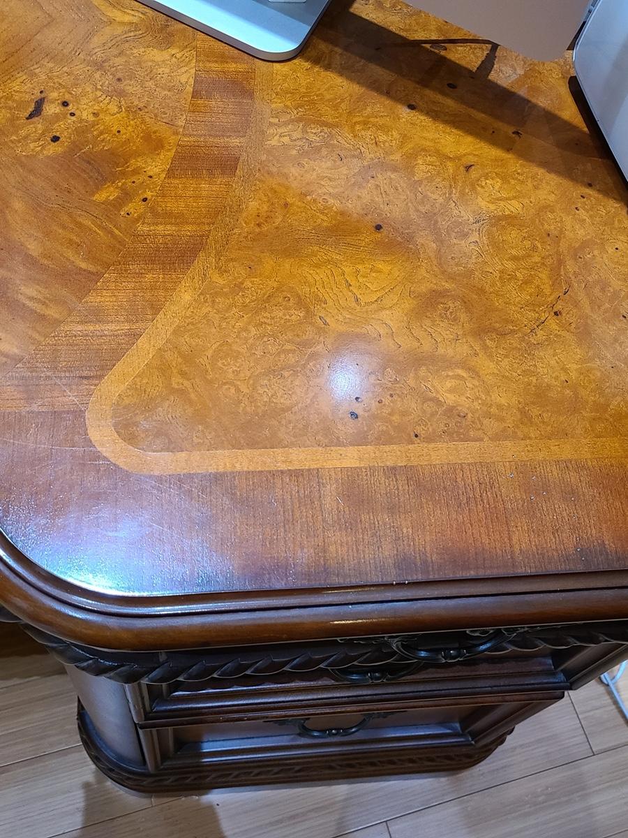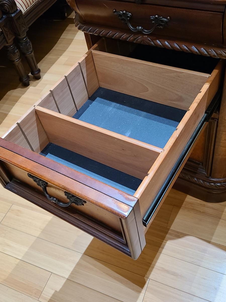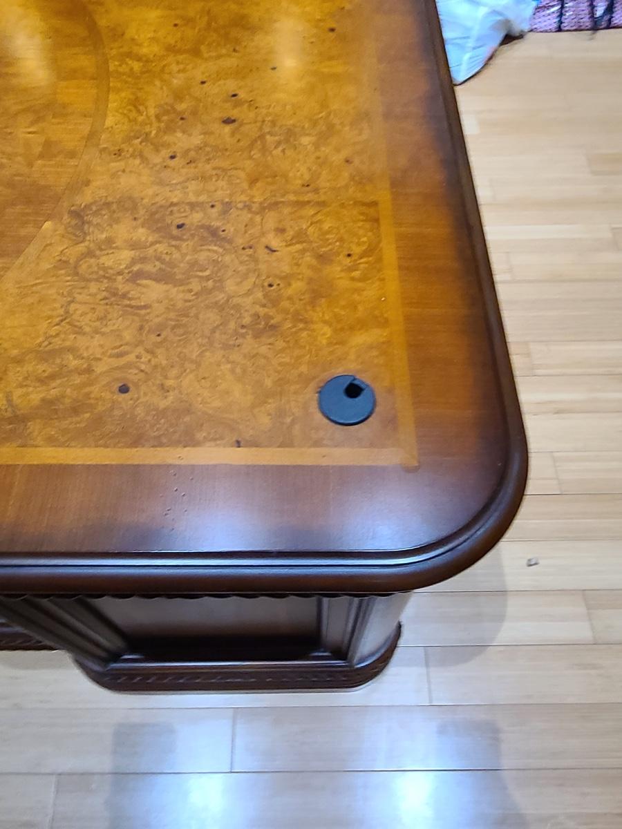 Offers Accepted 72x37x31 inches tall. This amazing desk features a traditional old world feel but with modern upgrades including a slide out work drawer on either side of the desk, including a slide out desk for guests on exterior of desk, grommet holes with caps for neat wiring, file drawers and pull-out keyboard storage. This desk has rounded corners with rope motif case moulding and grape leaf wood at corners. Perfect for home or office. COMPUTER NOT INCLUDED. This is functional and stylish! Please see all pictures as they are the best representation of the items. The pictures show condition, measurements if taken, and what is included in the lot. Due to the large amount that we photograph and the time frame, we are not always able to take measurements. All items unless noted, are pre-owned and have been used. If you purchased furniture, you must bring help. We do not allow one person to carry large furniture out on their own. Bring help, tools and a truck for the safety of our clients homes, and your personal safety. Company policy.