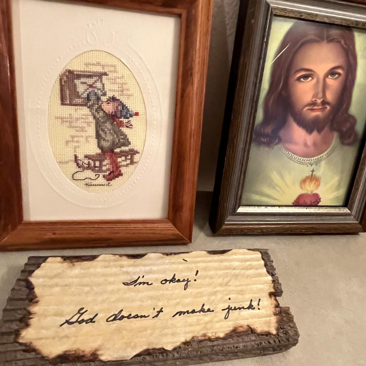 Collection of religious art pieces.