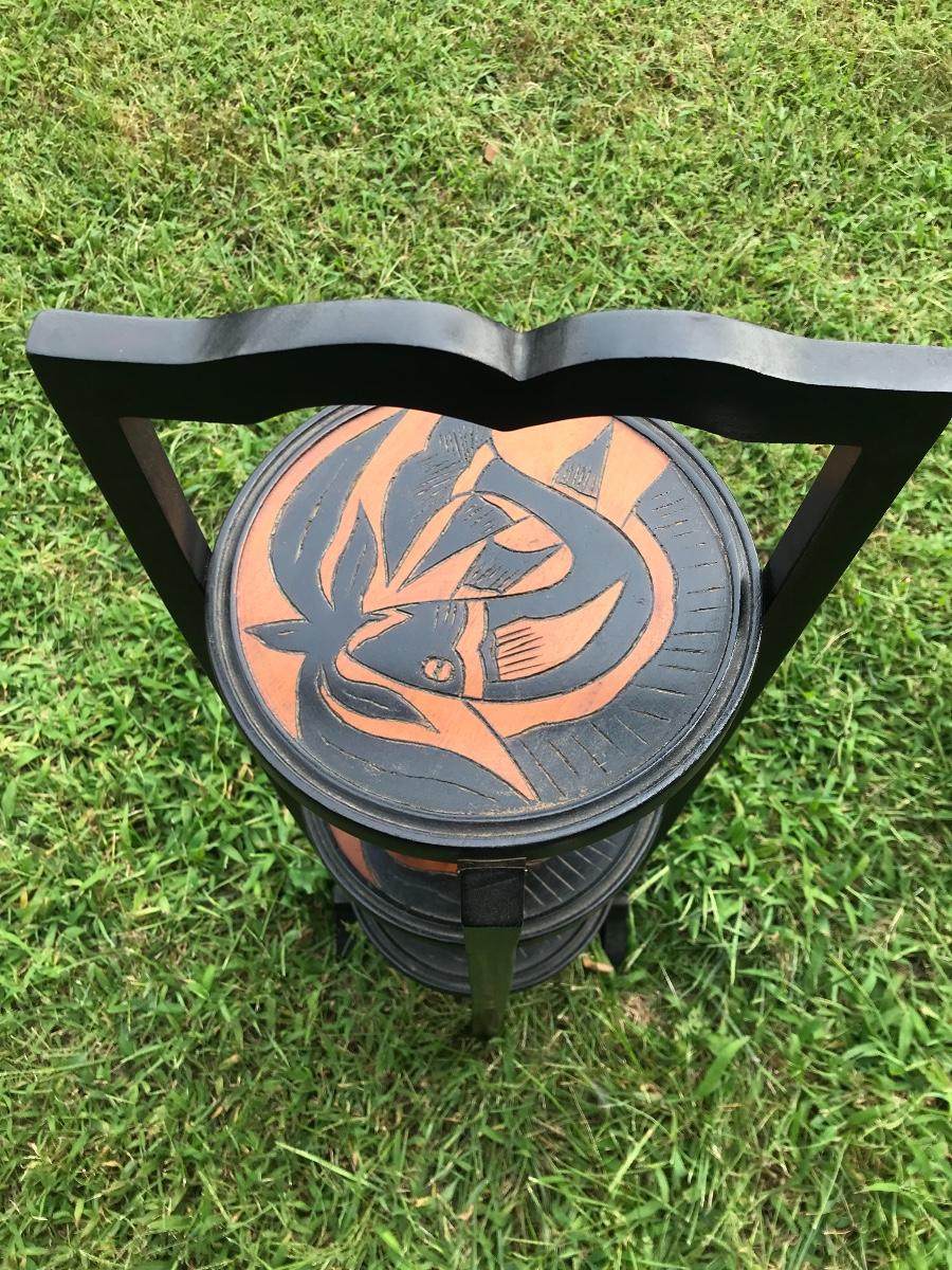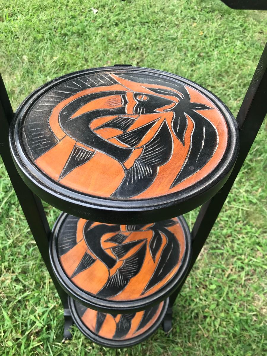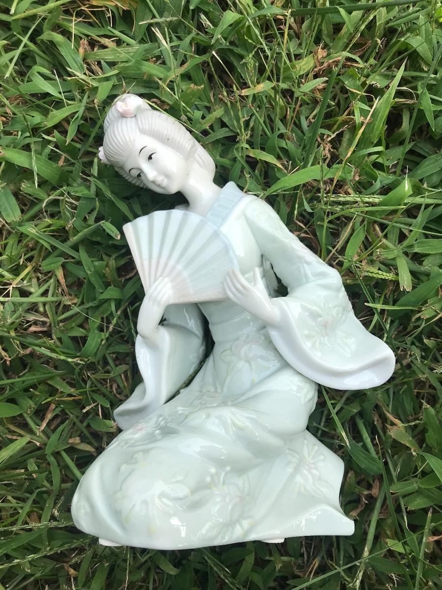 Lot 500: Carved Plant/Display Stand, Art, Porcelain Geisha, & Horse of China.