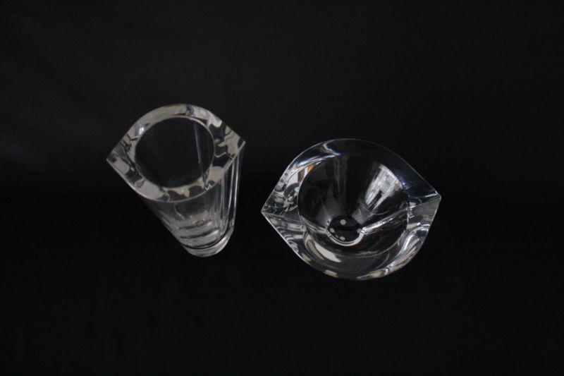 Orrefors Sweden Leaded Crystal Vase and Candy Dish - Set of two crystal pieces made by Orrefors Sweden. Both vase and candy dish are eye shaped and made with thick leaded crystal.