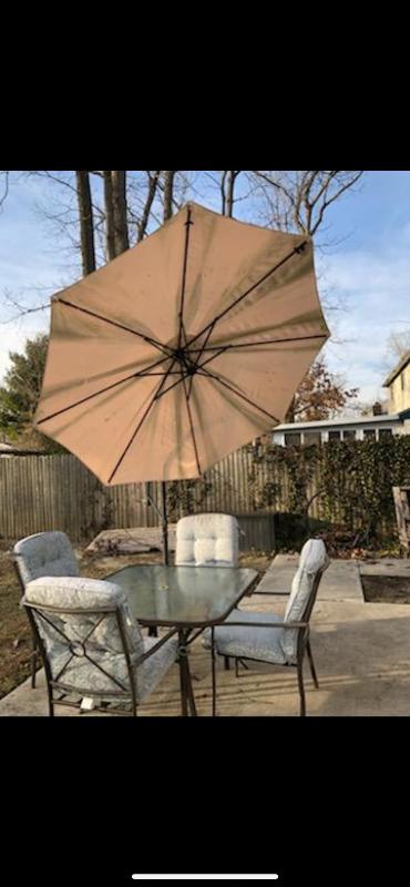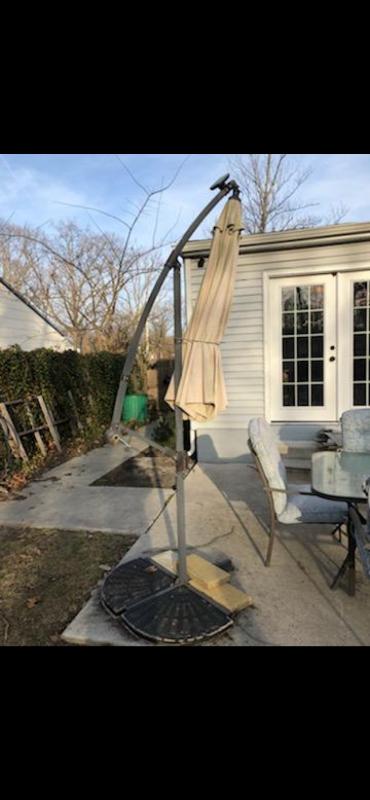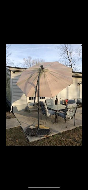 9 FT Tall. 3’x3’ Base. Free Standing umbrella.