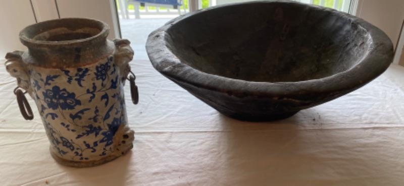 Lot # 145 Oyster Can, wooden bowl home decor lot