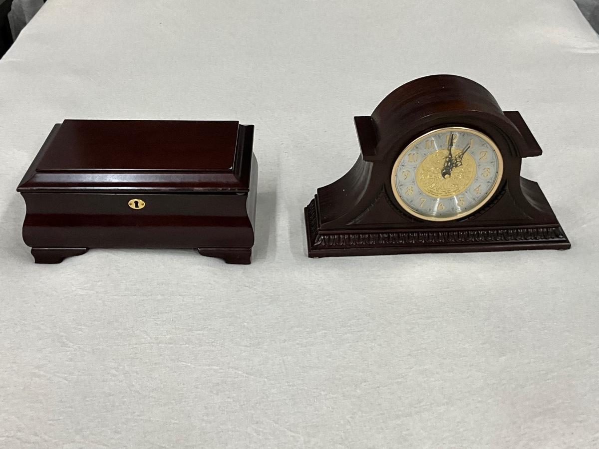Lot P 636 Westminster Whittington Mantel Clock & Wooden Jewelry Box