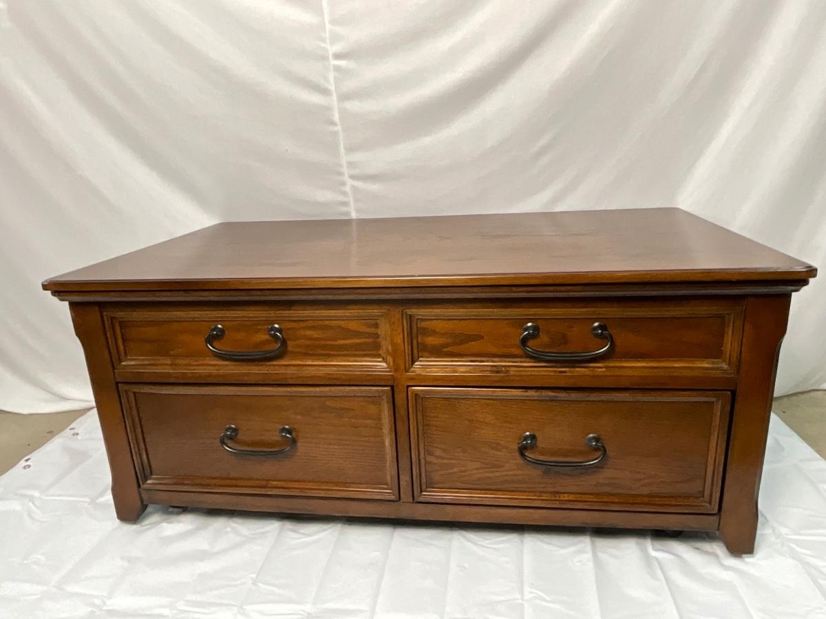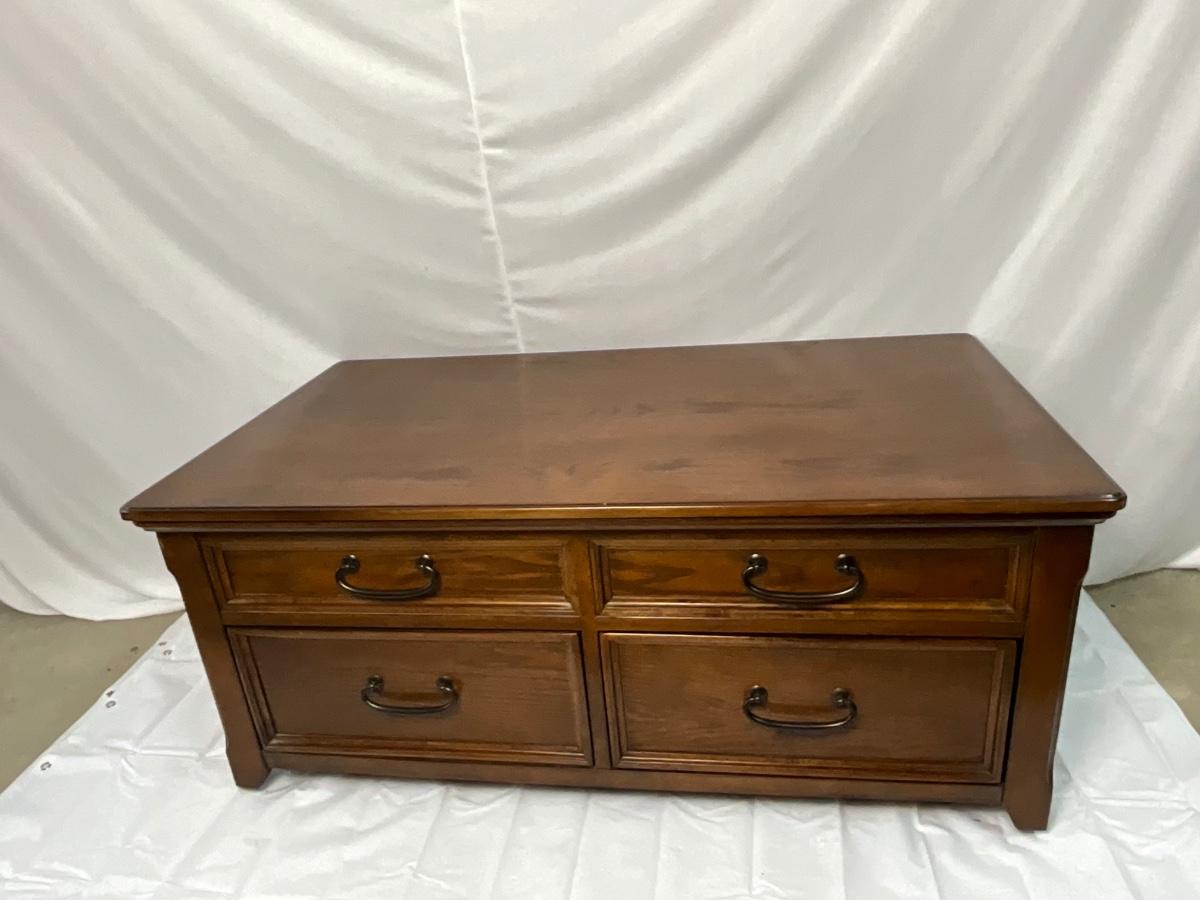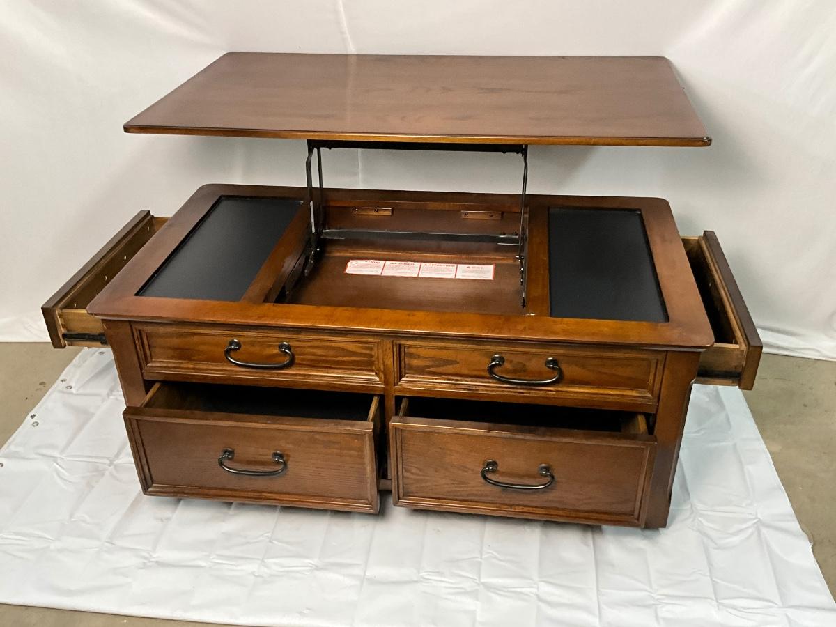 Lot P 656 Four Drawer Wooden Coffee Table with Elevating Table Top