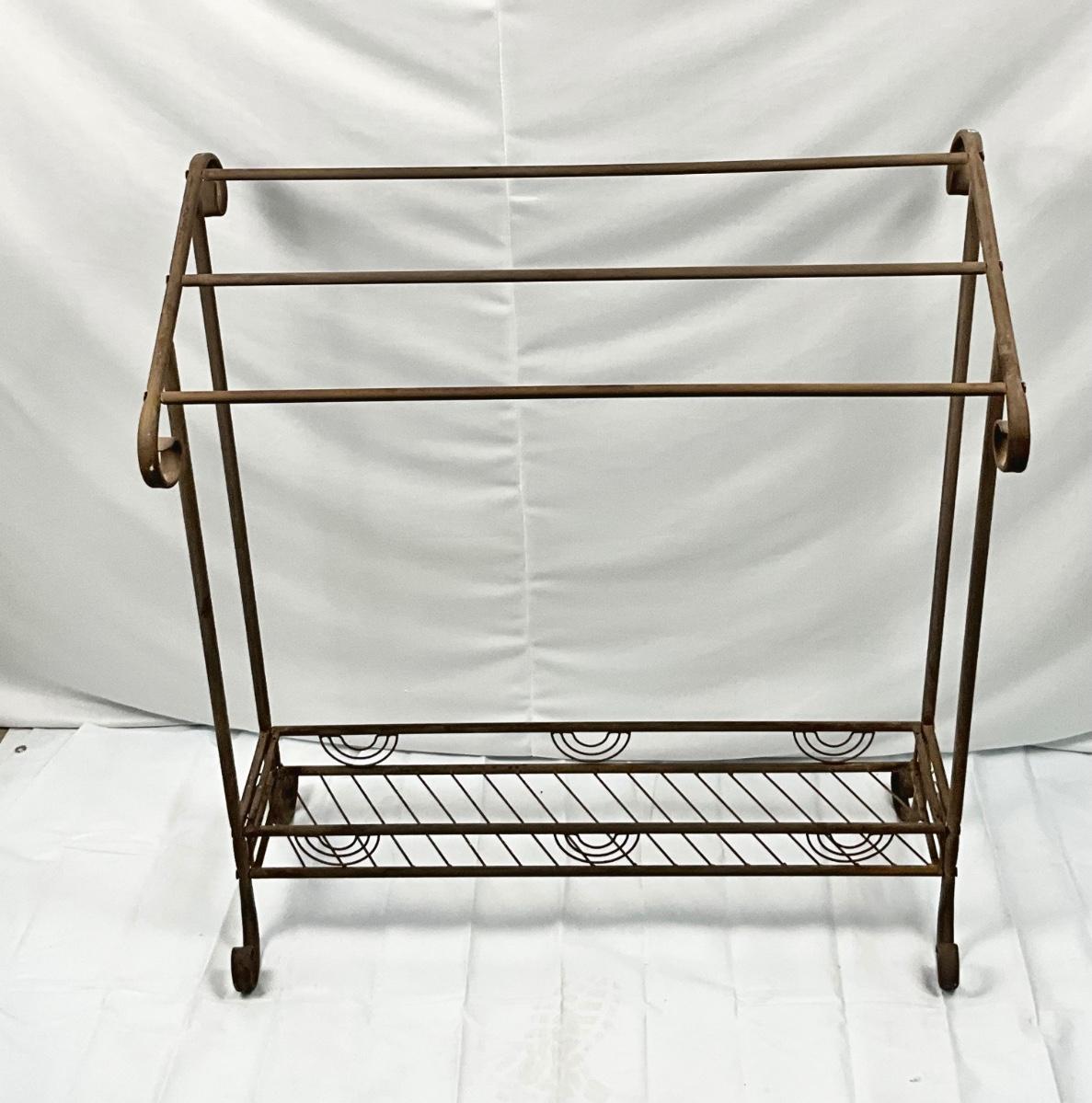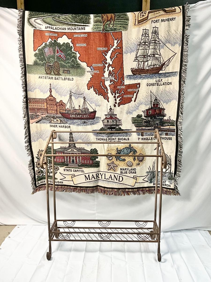 Lot P 671 Vintage Wrought Iron Quilt Rack & Maryland throw