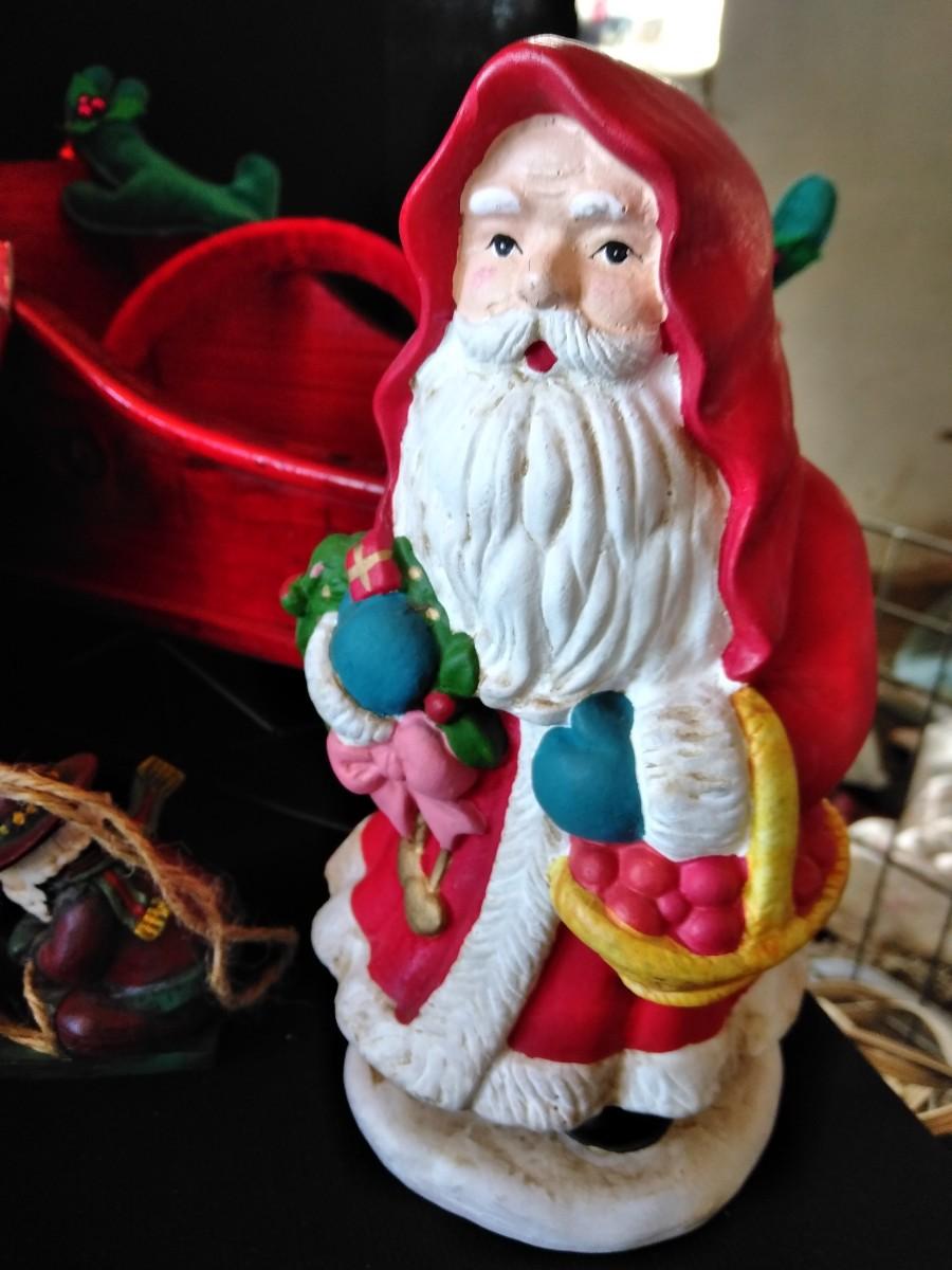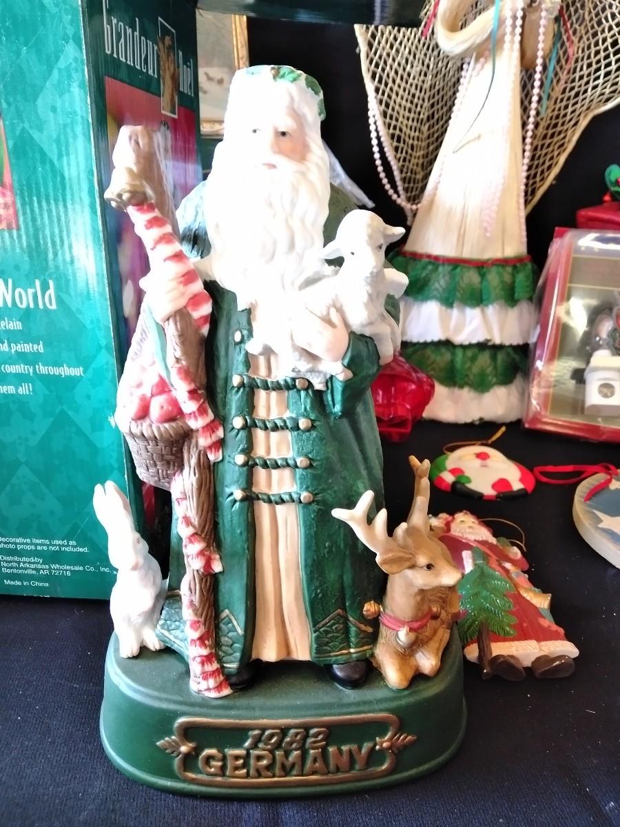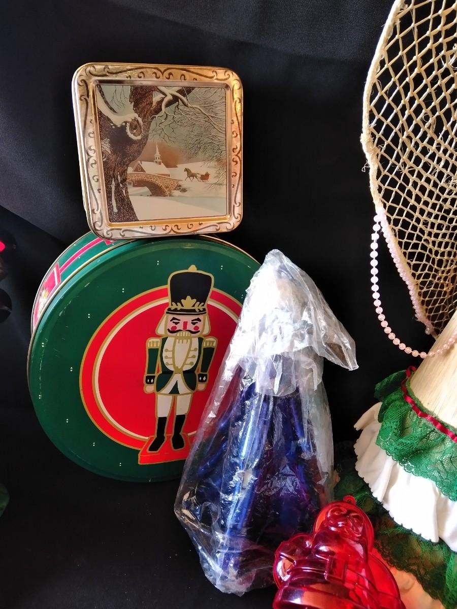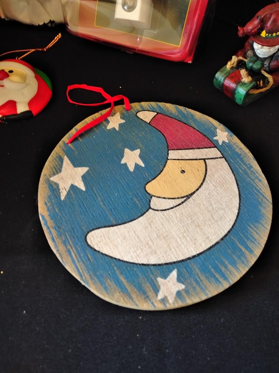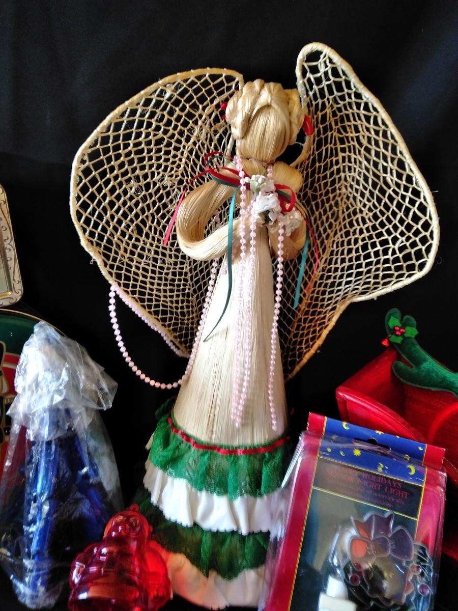 CHRISTMAS DECORATIONS, INCLUDING ANGELS, SANTA'S, NEW NIGHT LIGHTS, STOCKINGS, WOODEN SLEIGH AND MORE