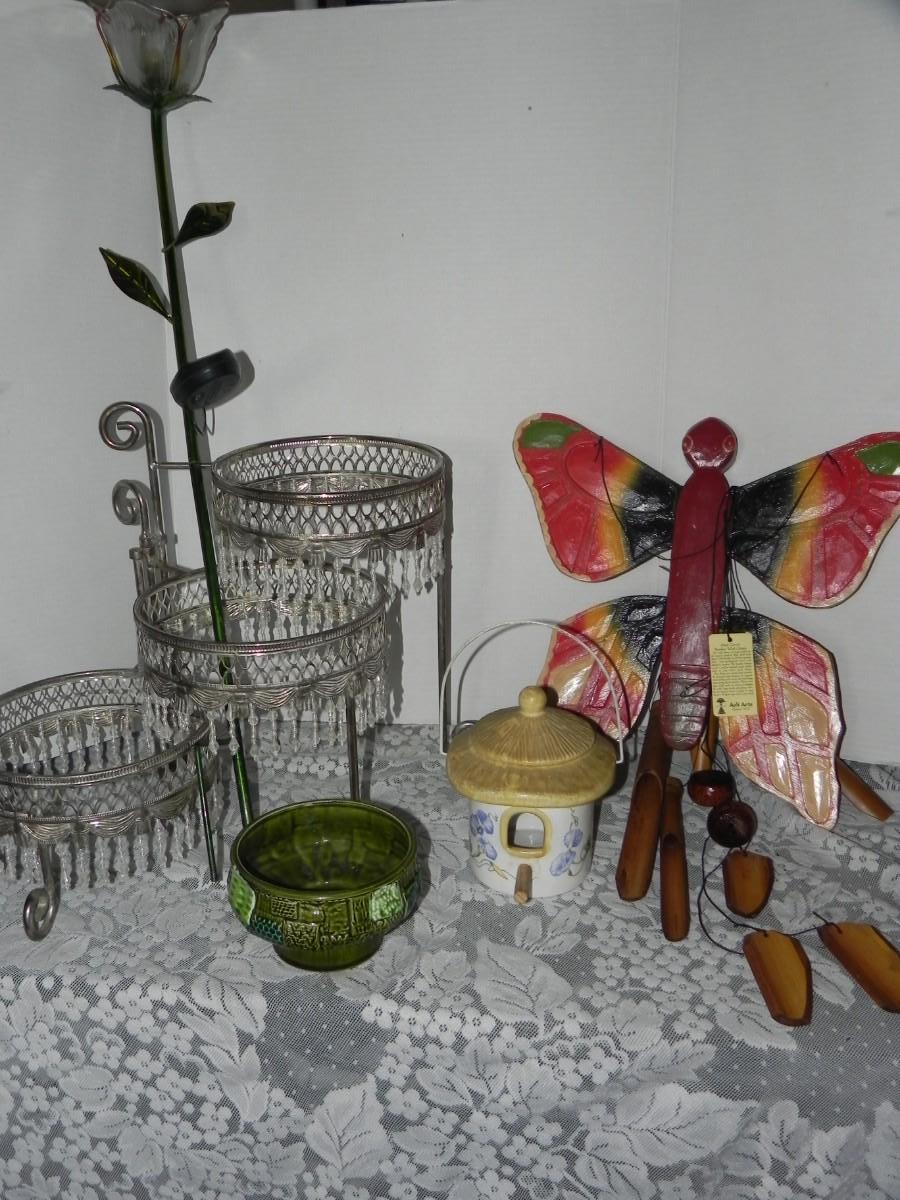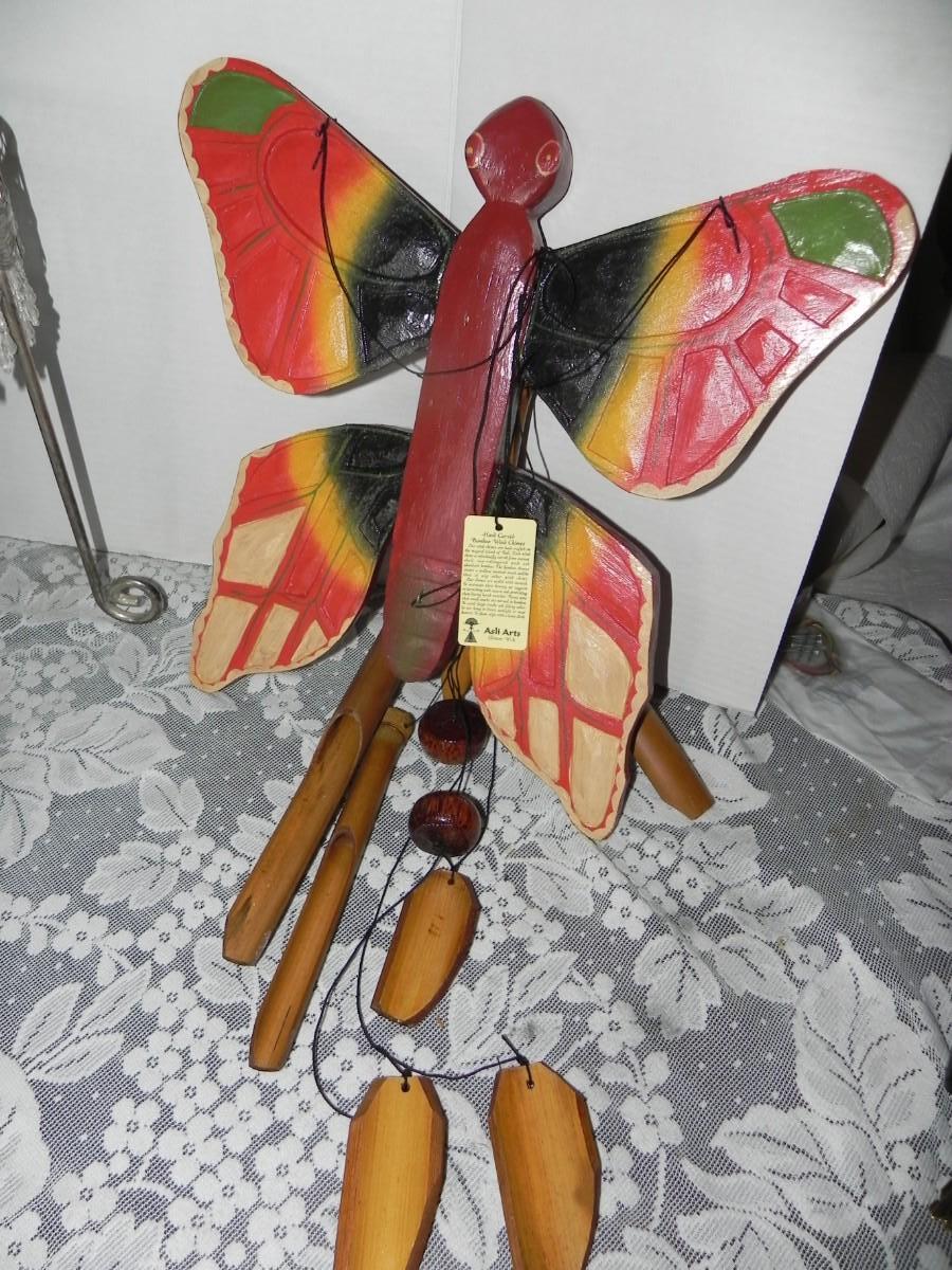 NEW BAMBOO BUTTERFLY WIND-CHIME SOLAR POWER FLOWER PLANT POTTING HOLDER (HOLDS 3) ,CERAMIC BIRD HOUSE