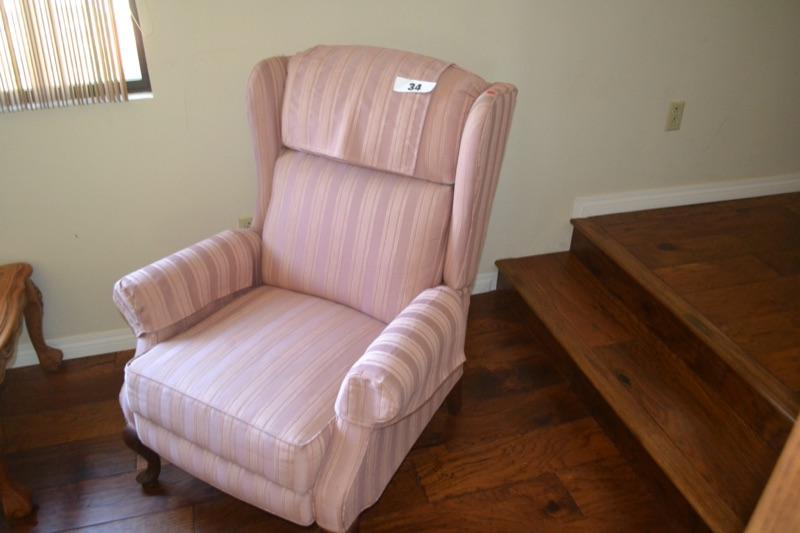 Lot 34  Wing Back Chair Recliner