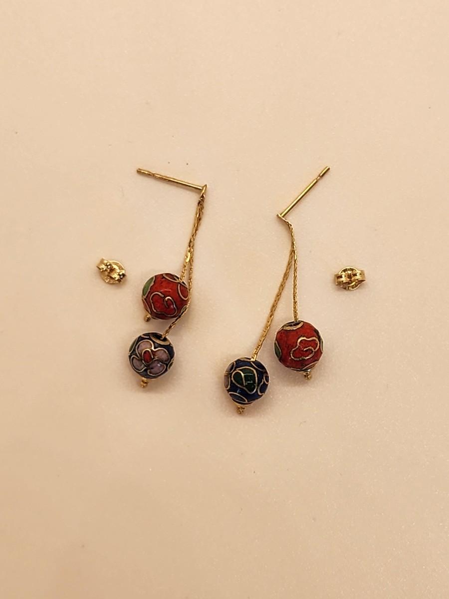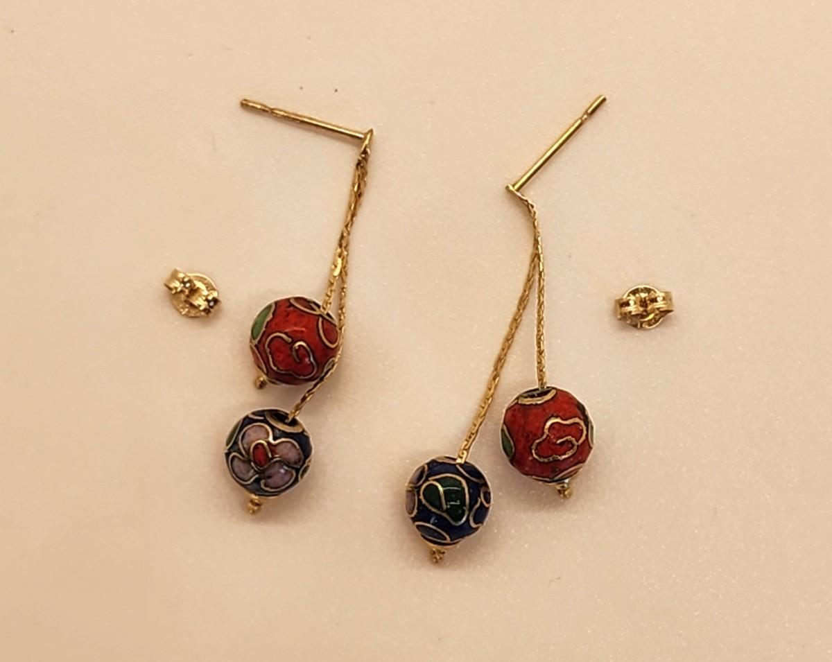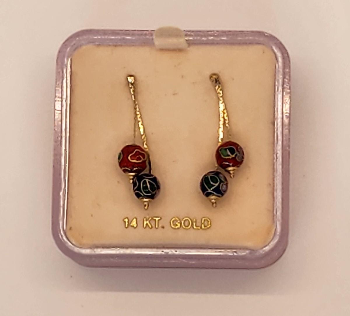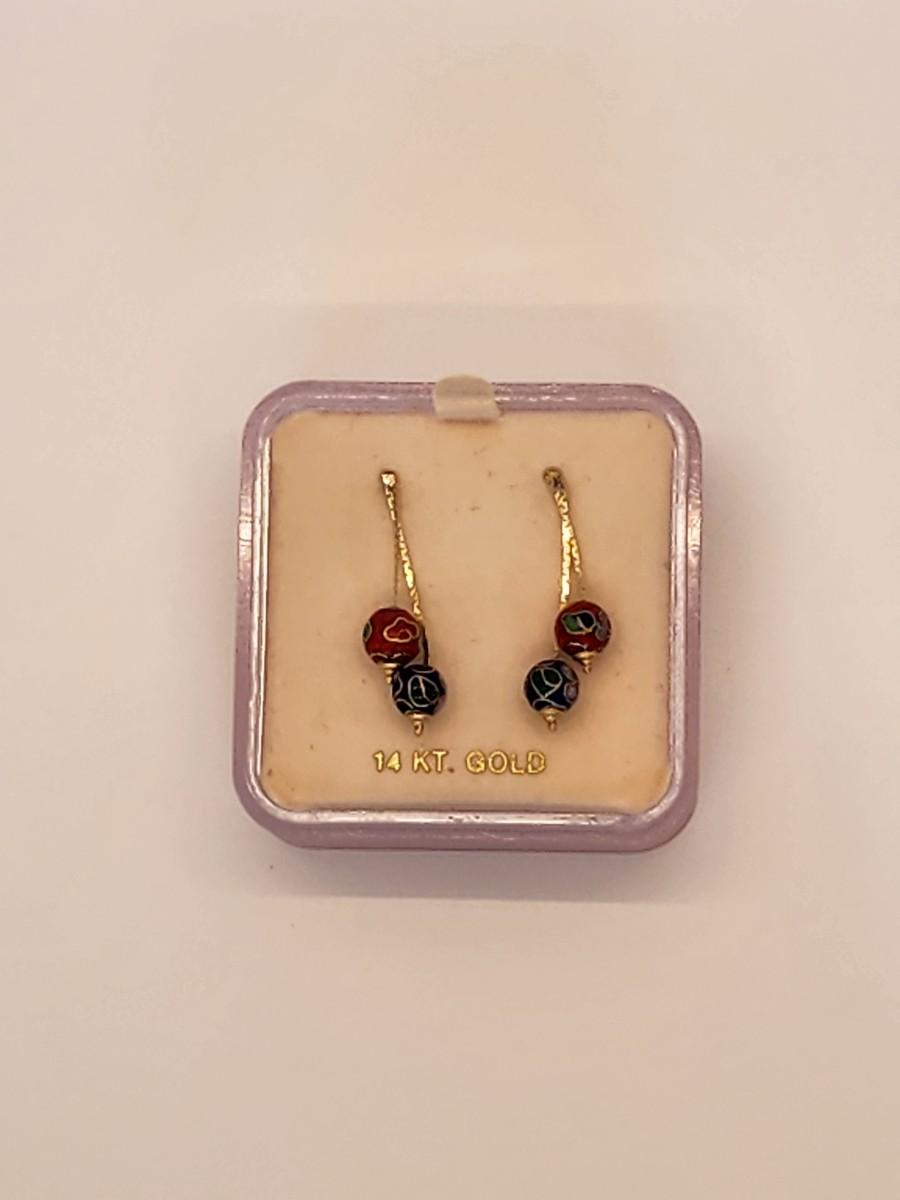 LOTJ 1: 14k Gold Cloissanne Dangling Pierced Earrings