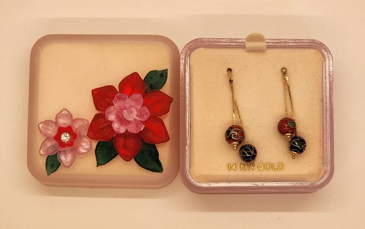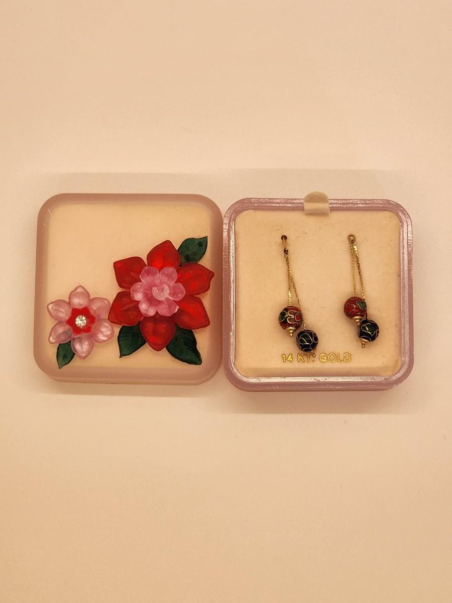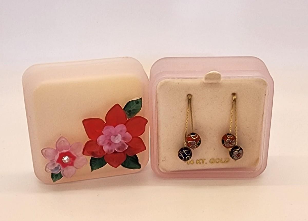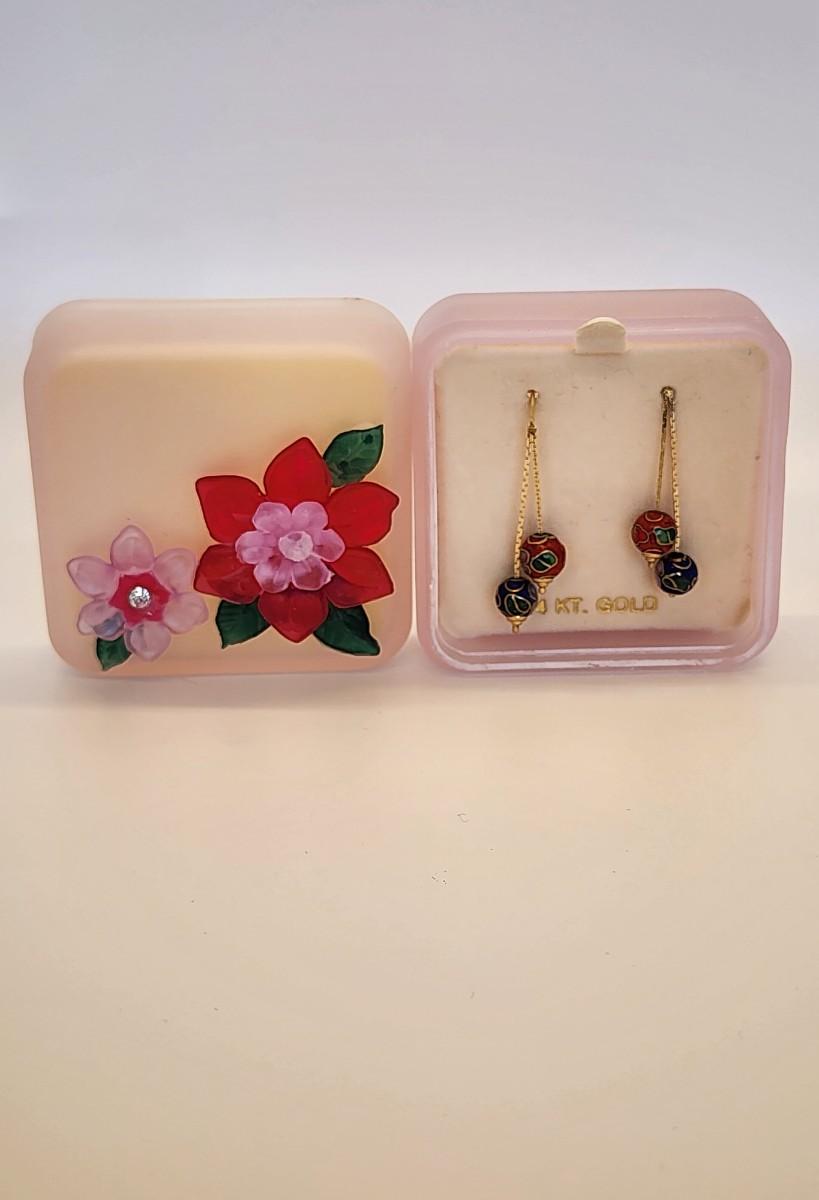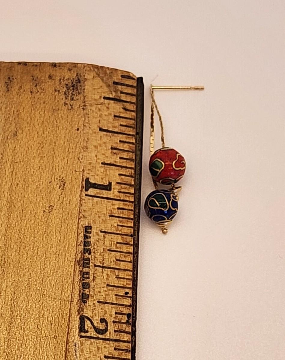 LOTJ 1: 14k Gold Cloissanne Dangling Pierced Earrings