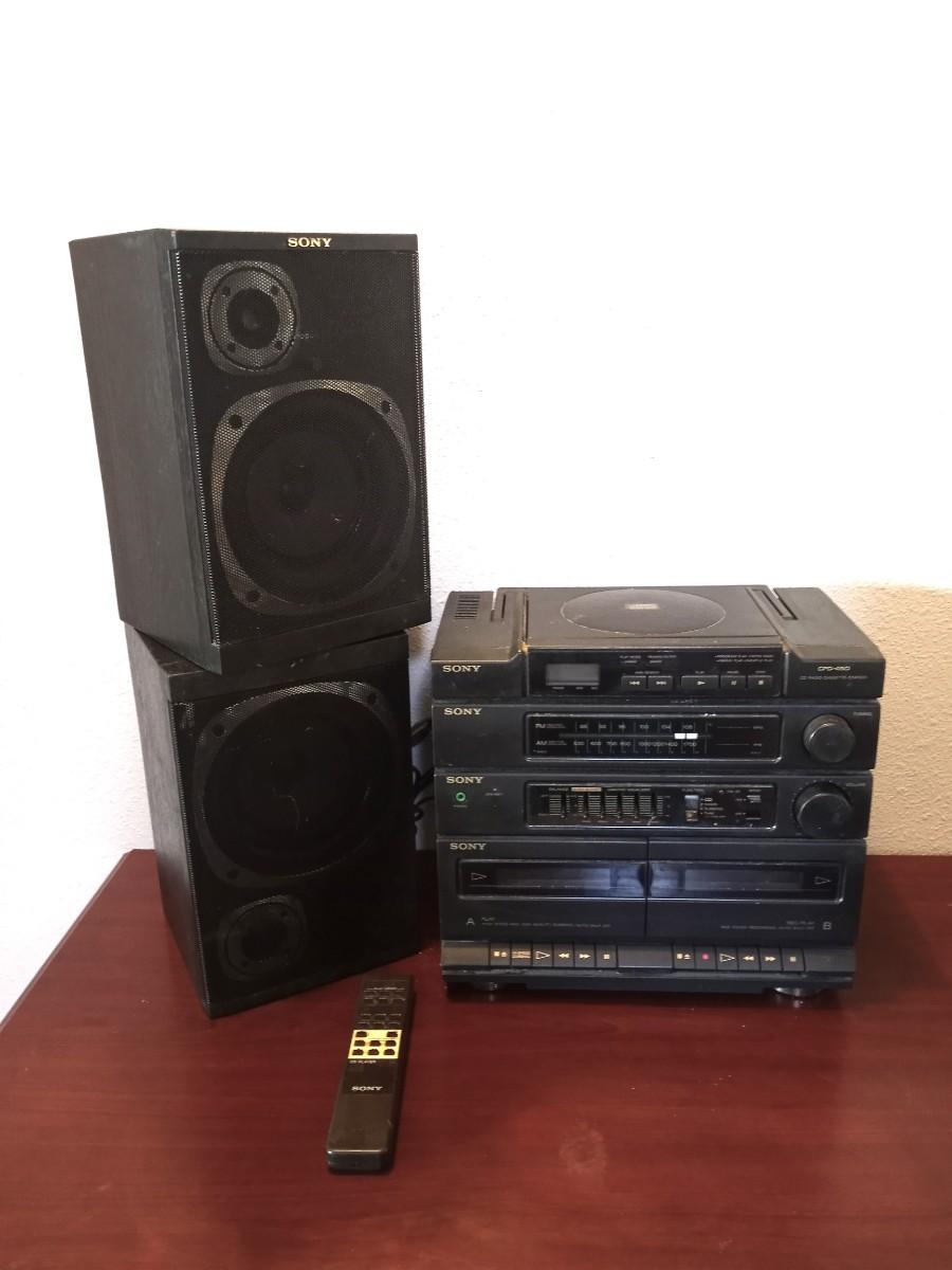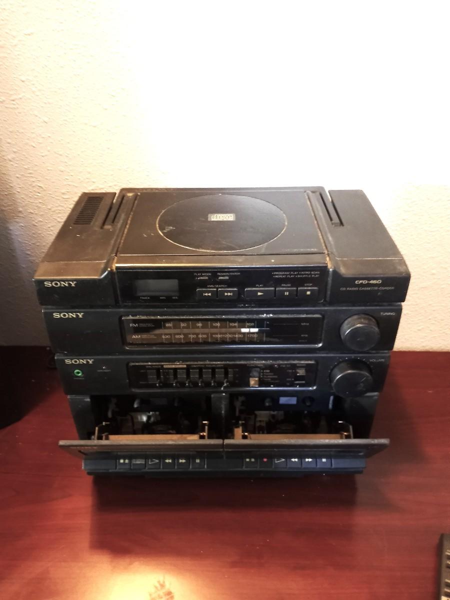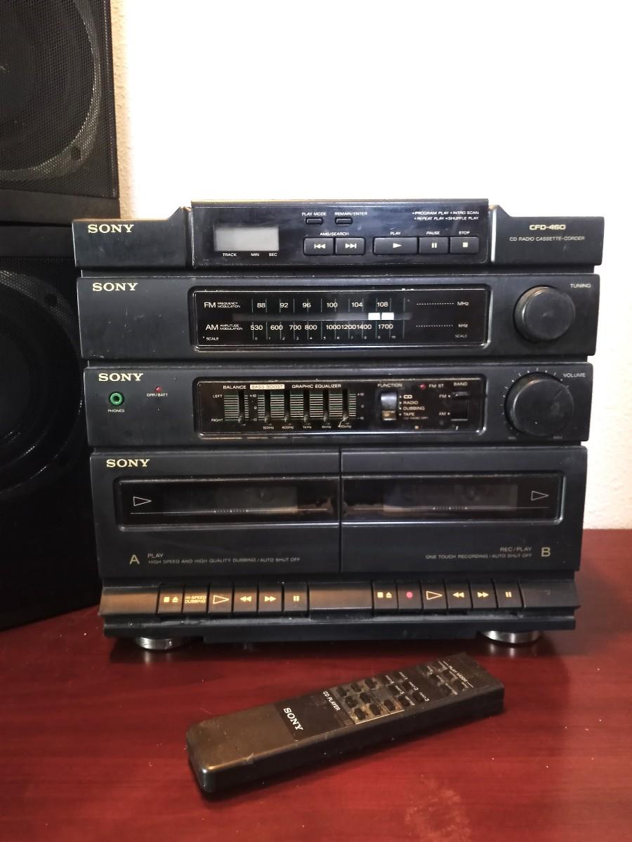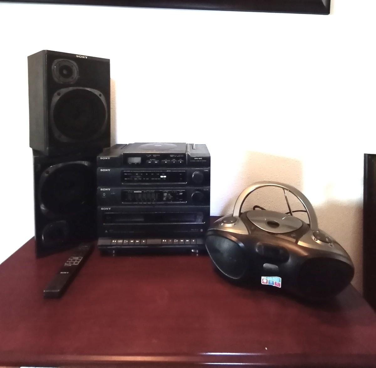 SONY ALL IN ONE CD/CASSETTE/STEREO AND EQUALIZER DETACHABLE SPEAKERS WITH REMOTE MODAL CFD 460 AND ILIVE CARRY STEREO AND CD PLAYER