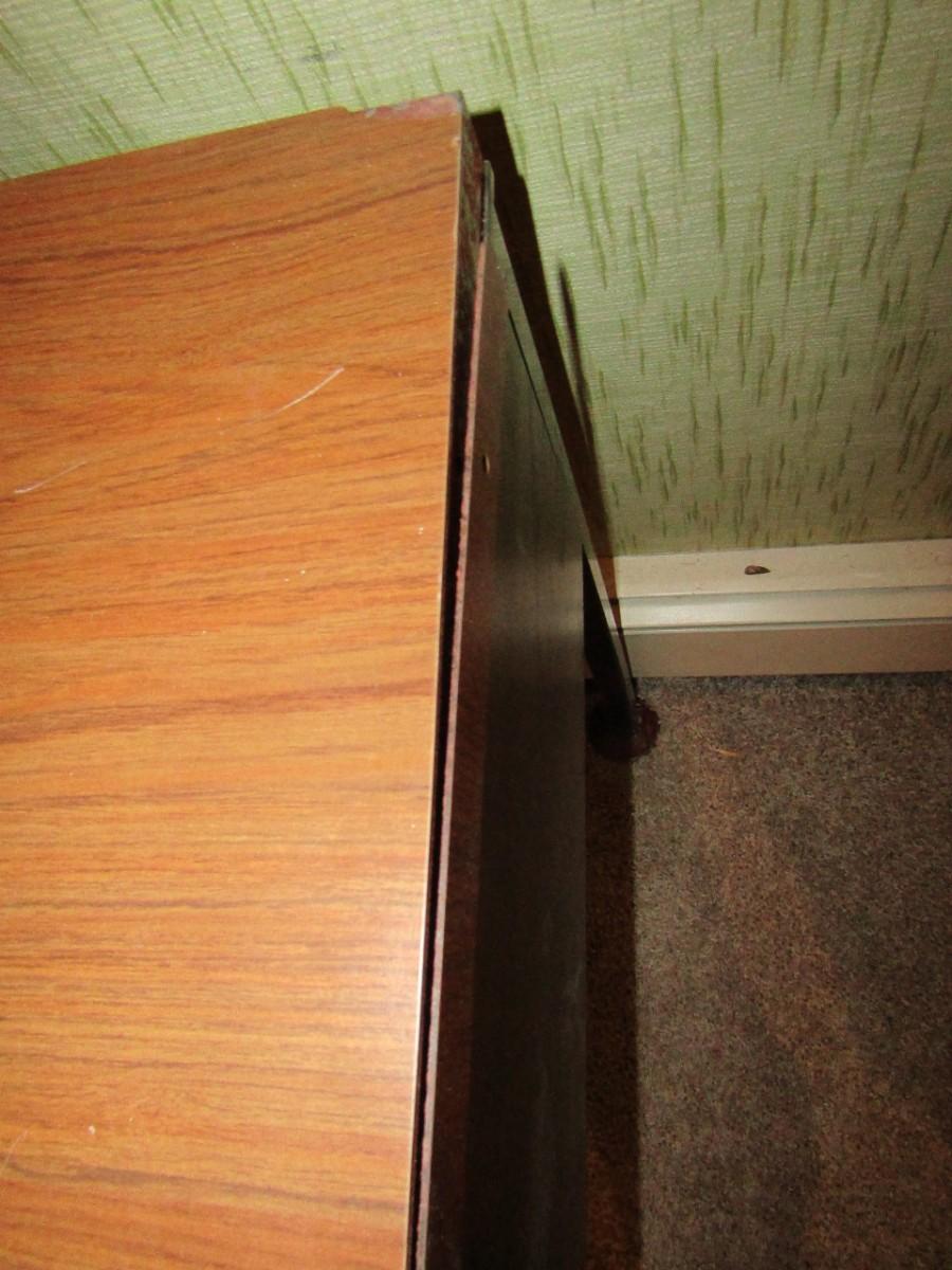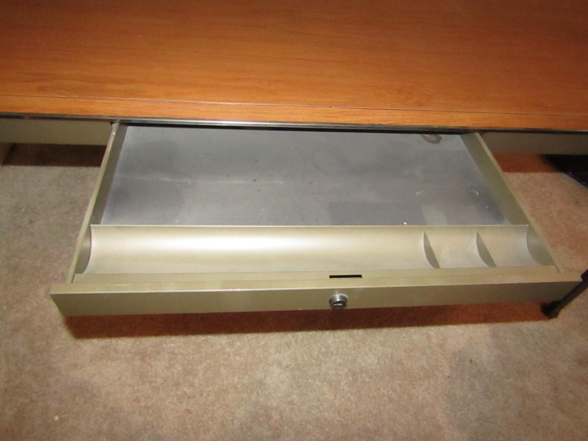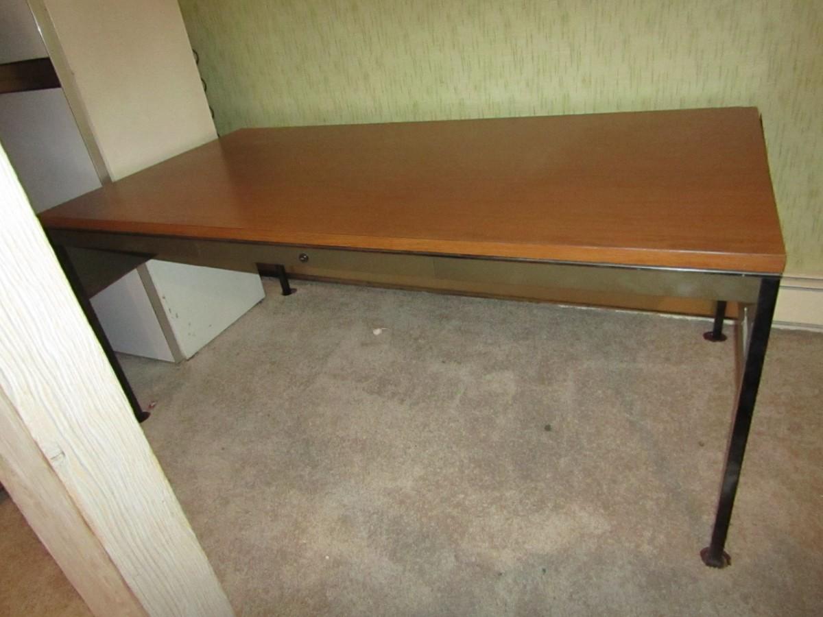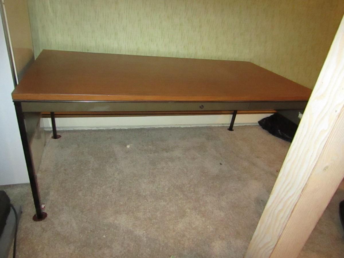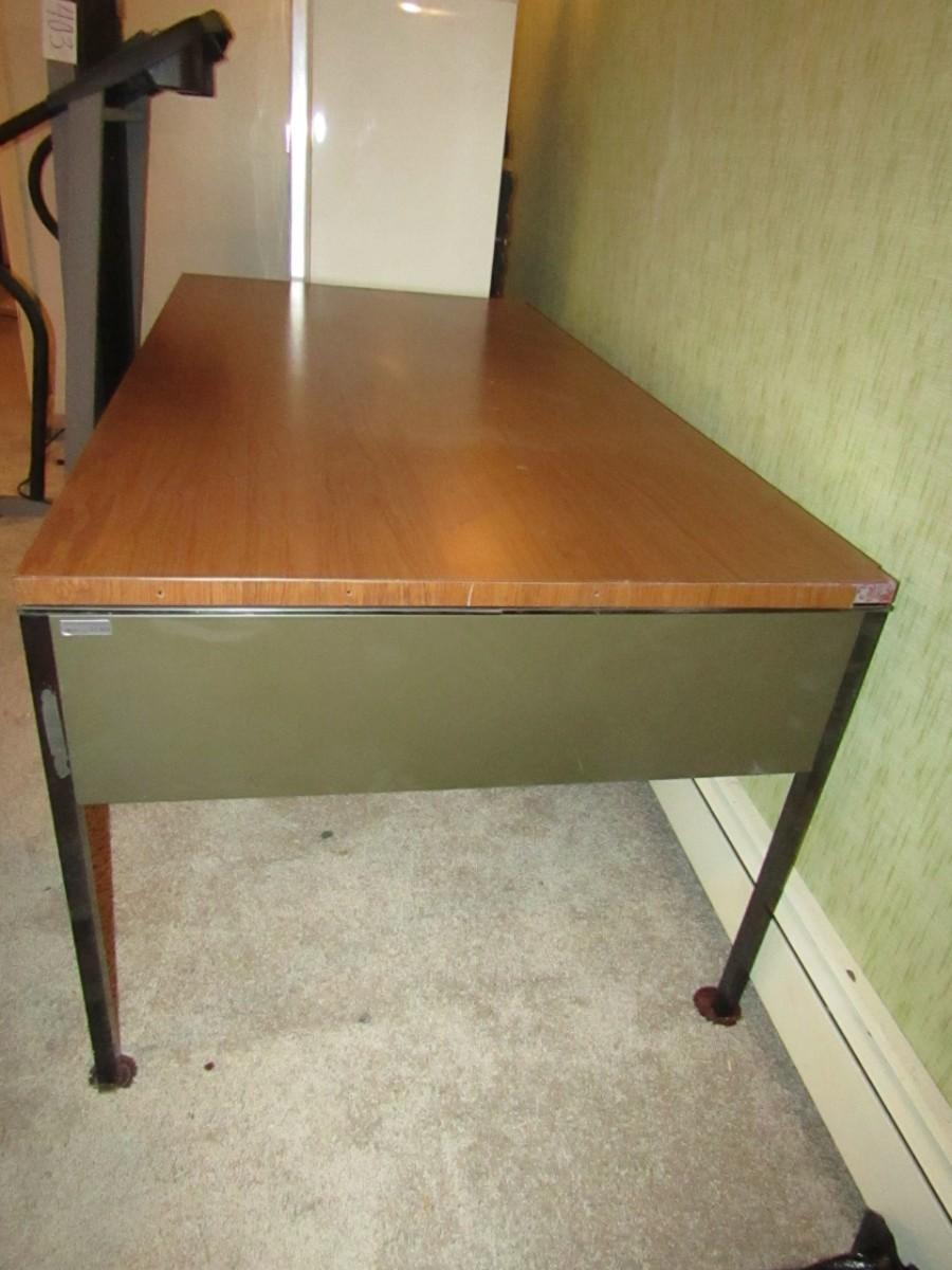 GREAT PROJECT TABLE WITH METAL FRAME AND FORMICA TOP (STARTING TO PEEL ON THE SIDE TRIM)
