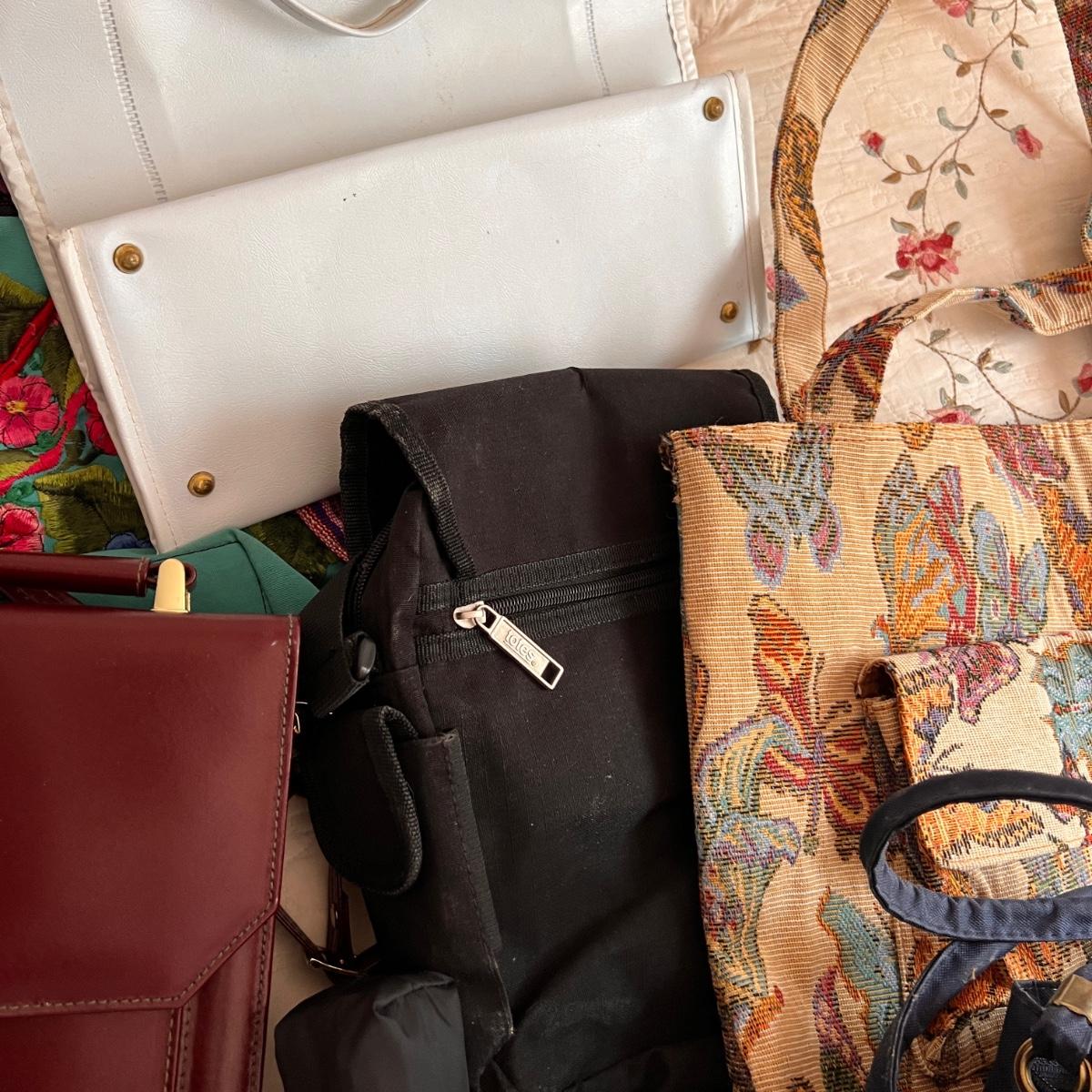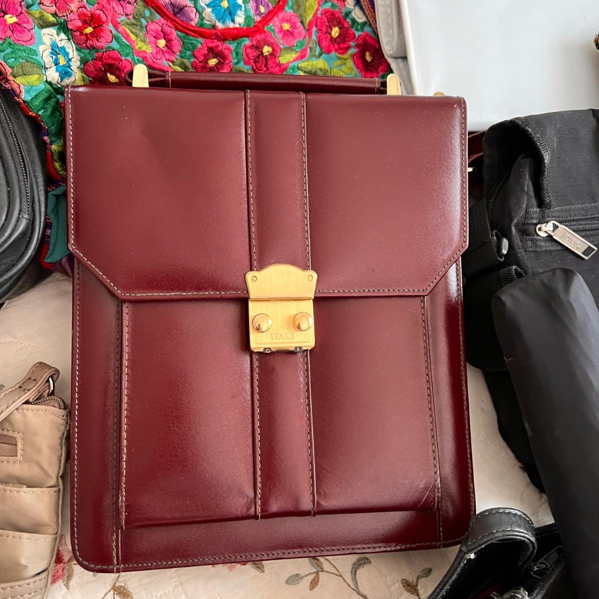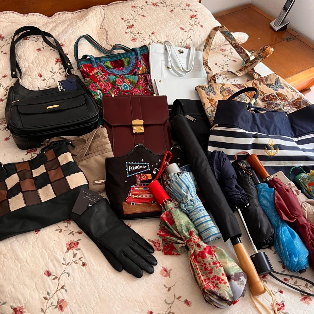 Mixed lot purses, new pair of leather gloves, purse umprellas, totes. Various conditions.