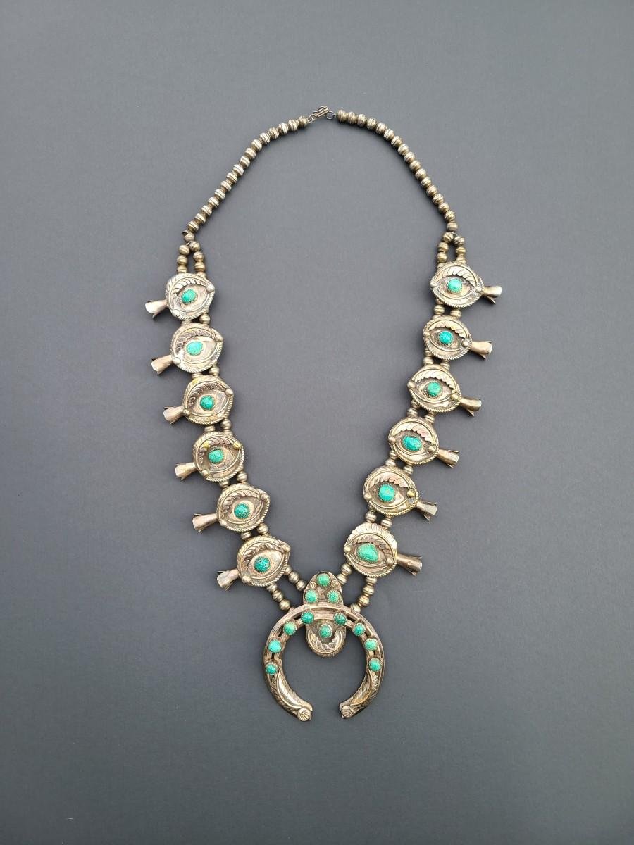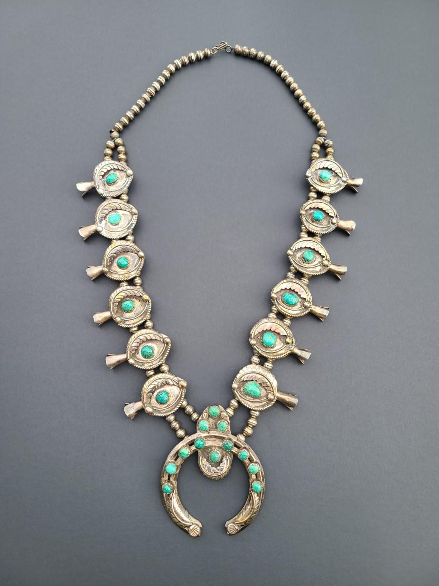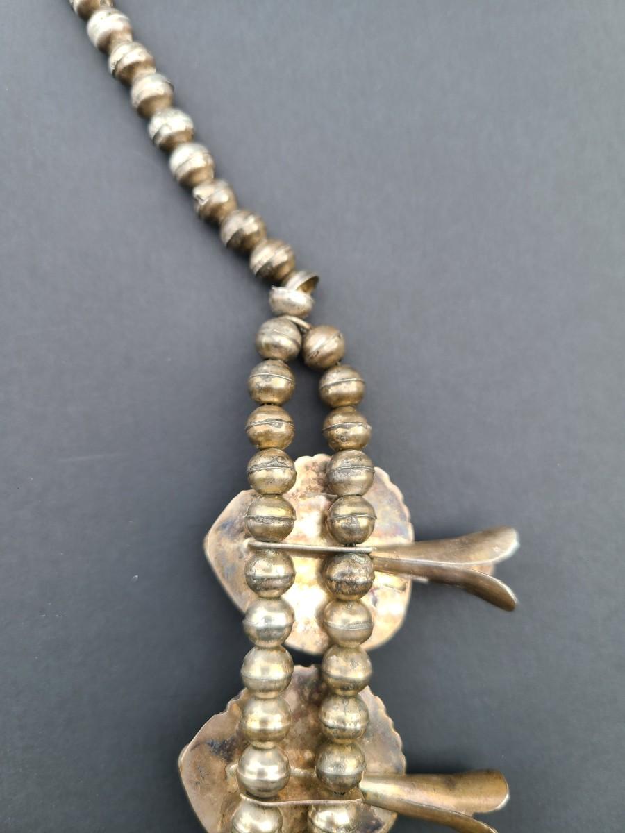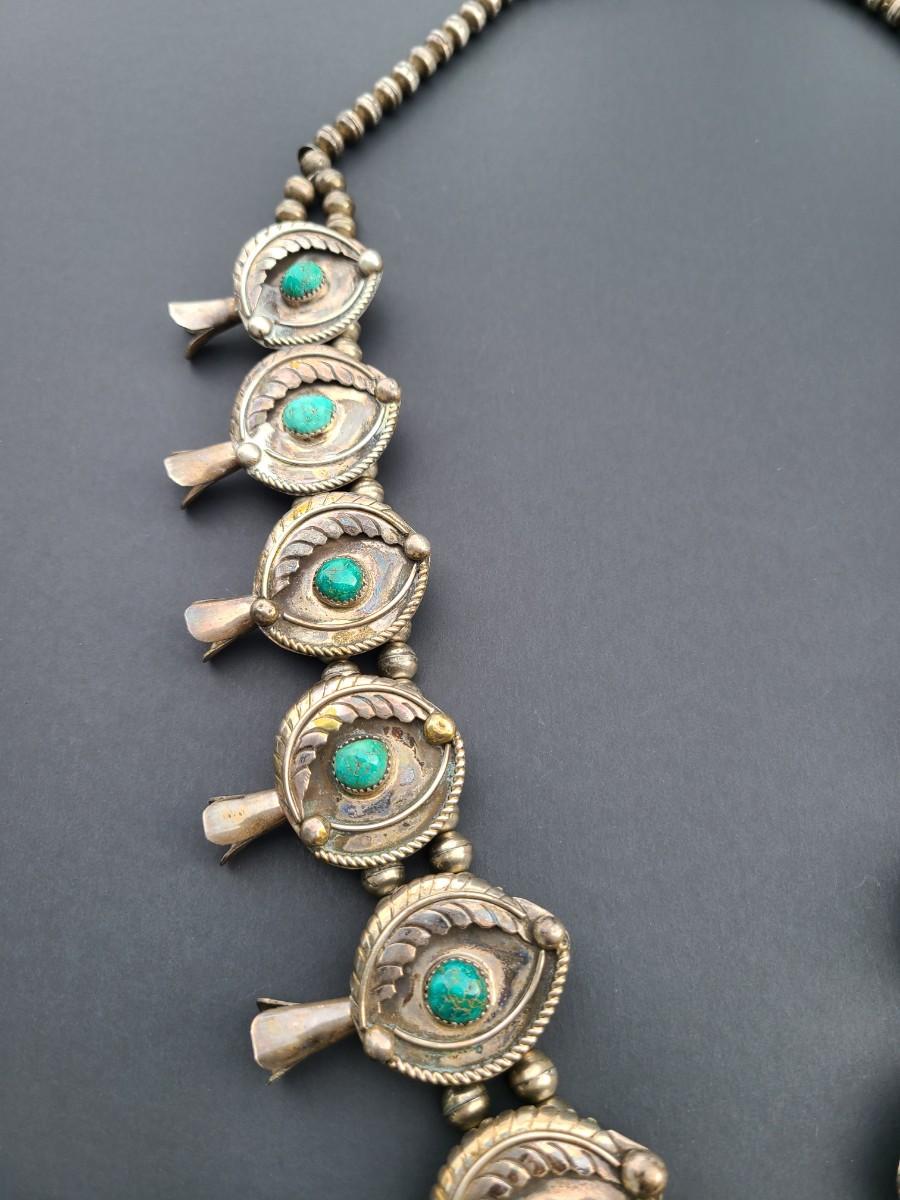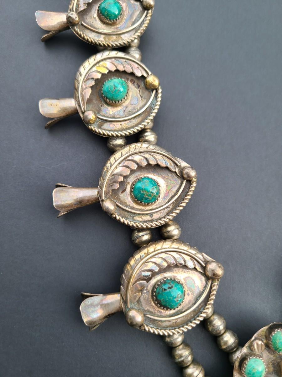 Lot PV 6: American Indian Southwestern Navajo Squash Blossom Turquoise and Silver necklace