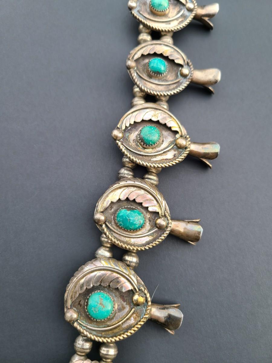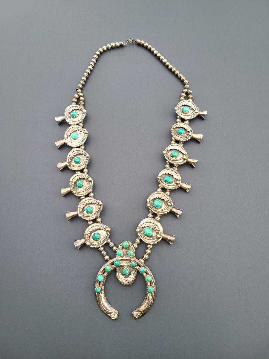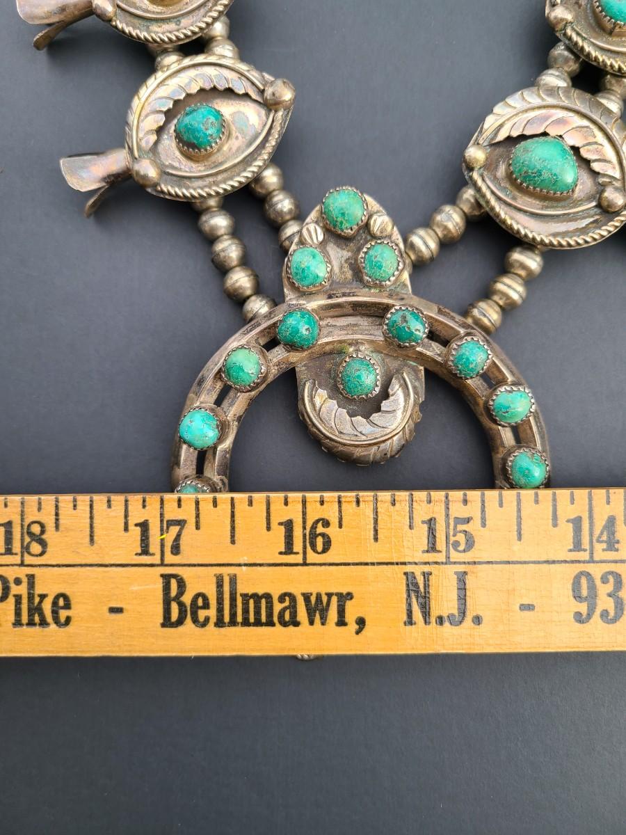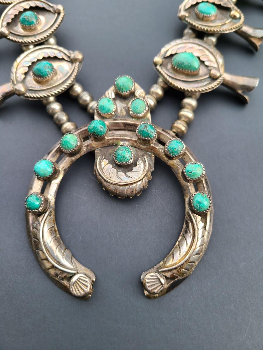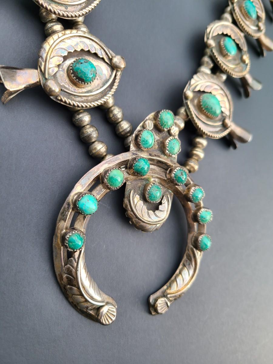 Lot PV 6: American Indian Southwestern Navajo Squash Blossom Turquoise and Silver necklace