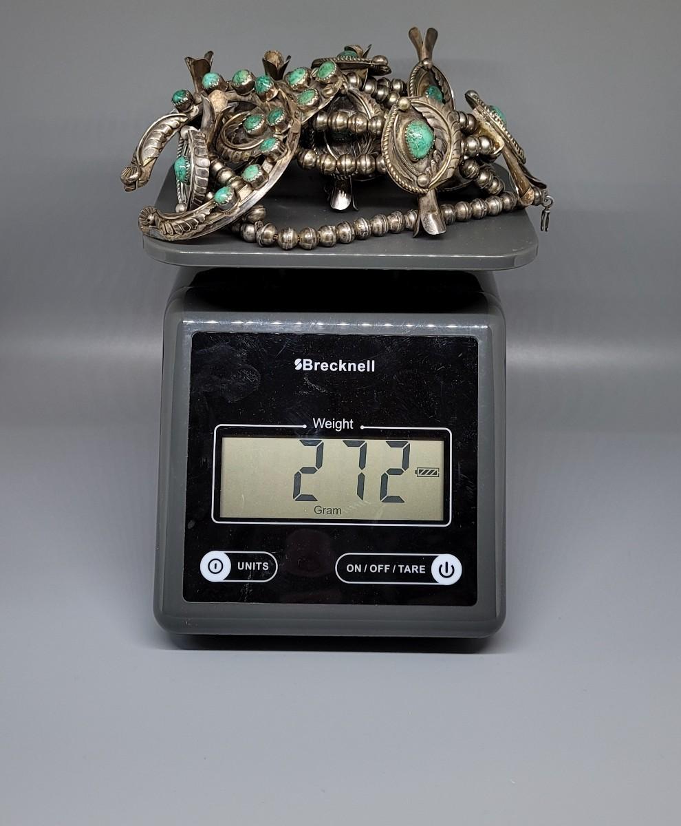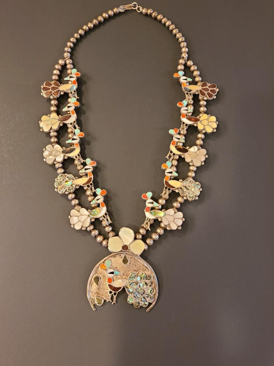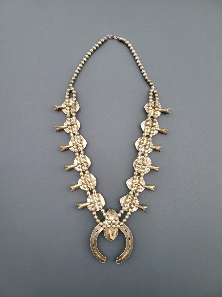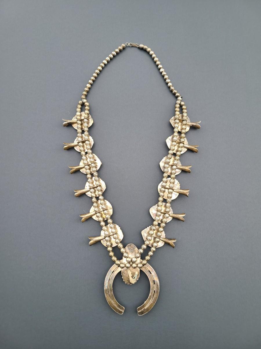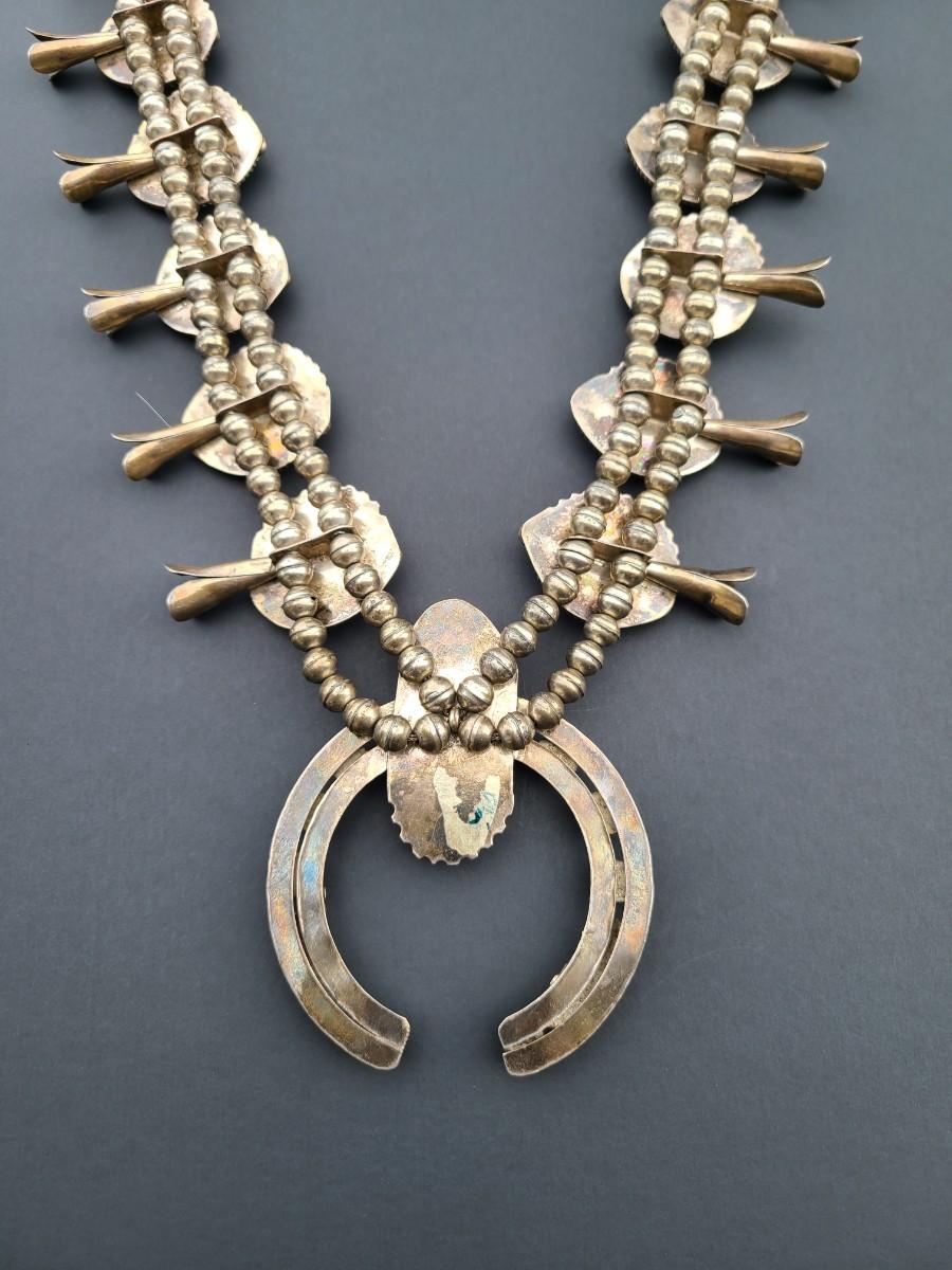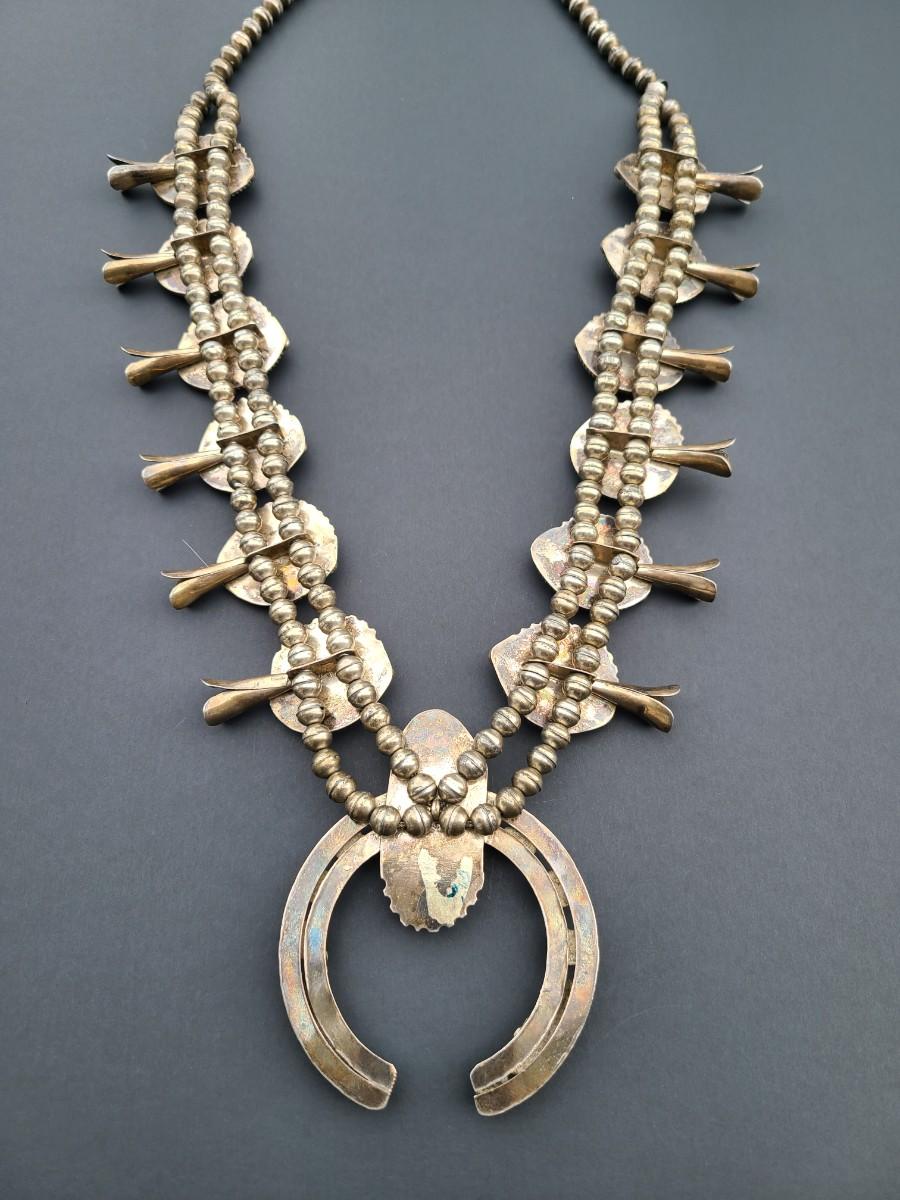 Lot PV 6: American Indian Southwestern Navajo Squash Blossom Turquoise and Silver necklace