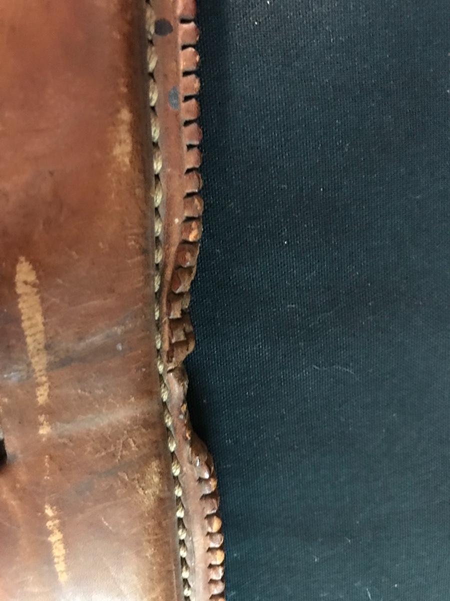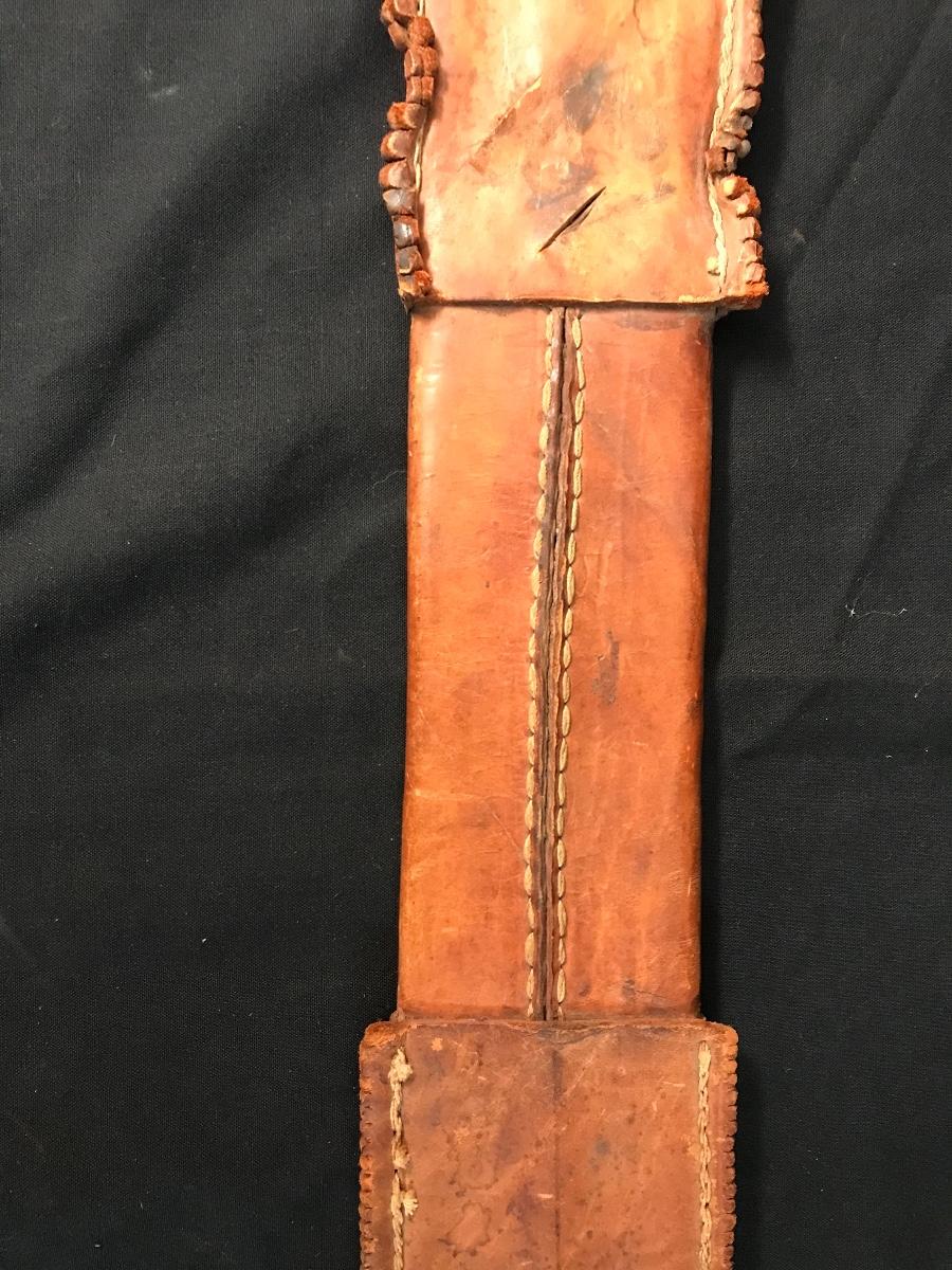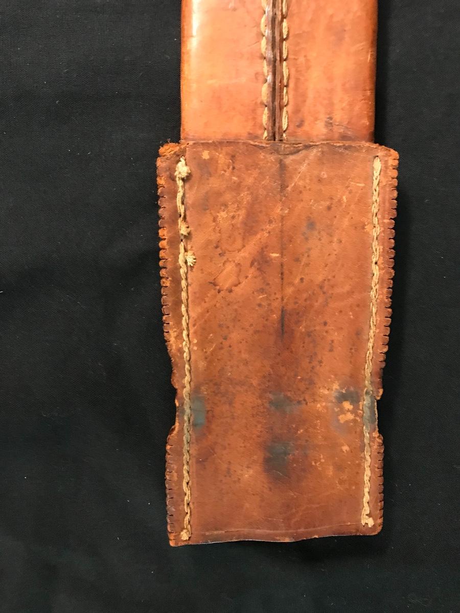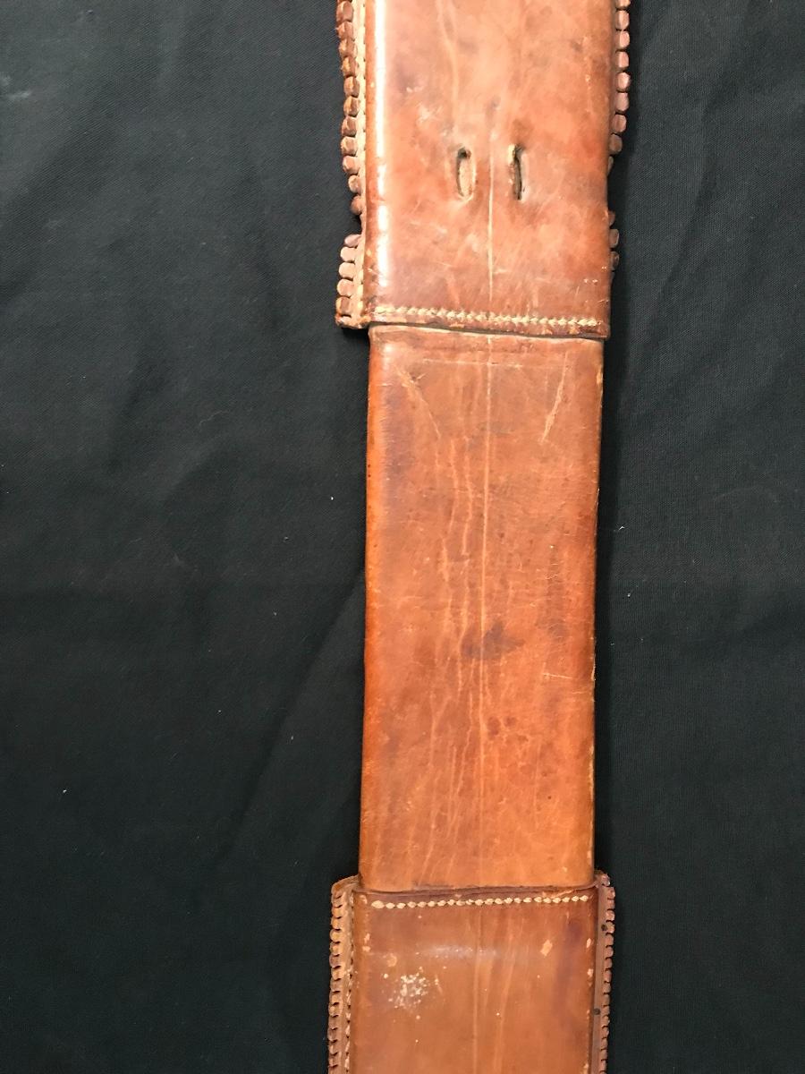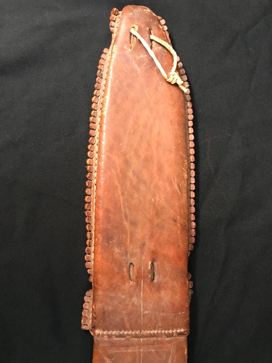 Vintage Collins & Co. Legitimus Machete with leather scabbard. Massive 27 inch blade, rounded and double-edged at the tip. The pictures show condition, measurements if taken, and what is included in the lot. Due to the large amount that we photograph and the time frame, we are not always able to take measurements. All items unless noted, are pre-owned and have been used. If you purchased furniture, you must bring help. We do not allow one person to carry large furniture out on their own. Bring help, tools and a truck for the safety of our client’s homes, and your personal safety. Company policy. Thank you.