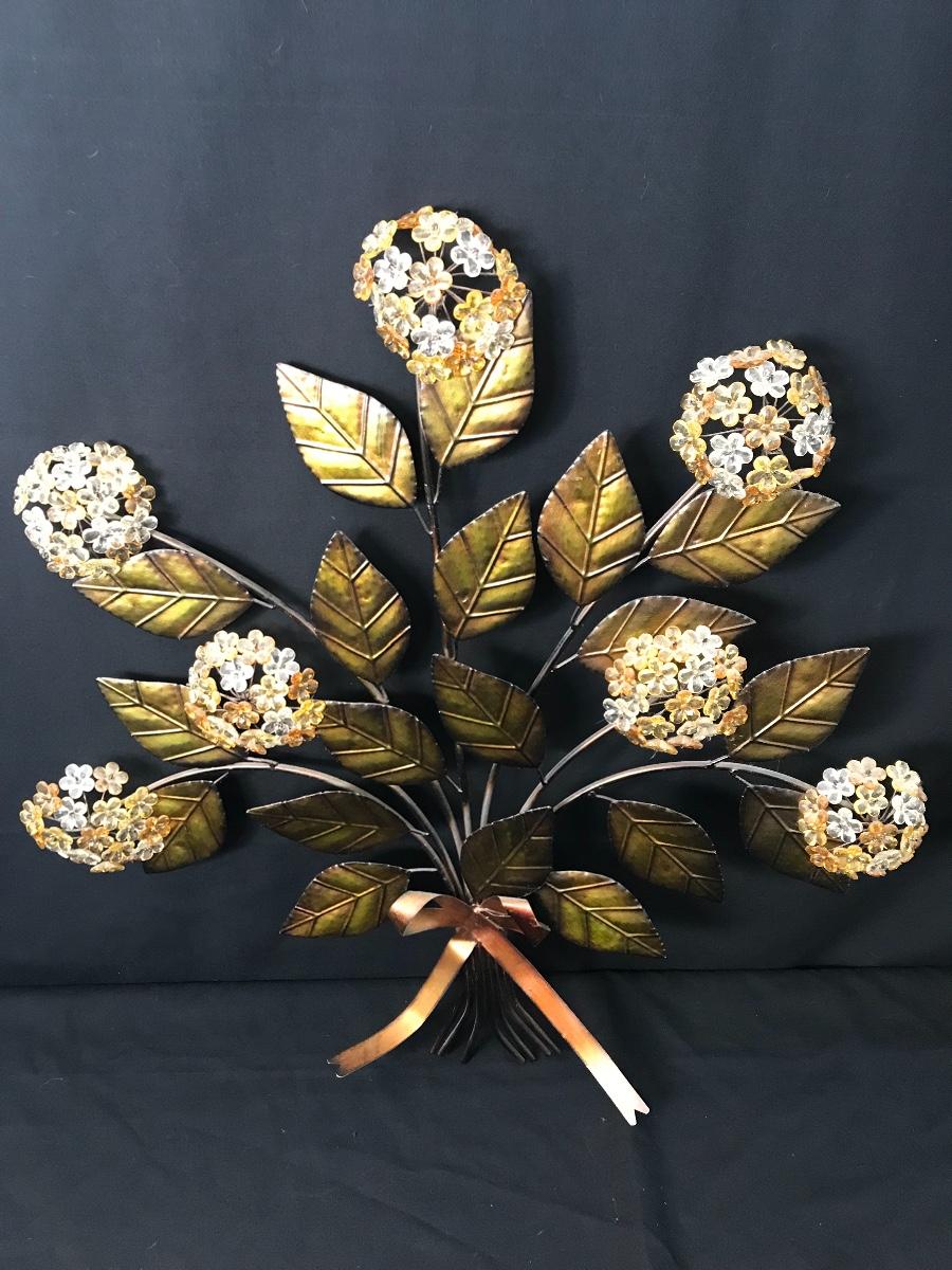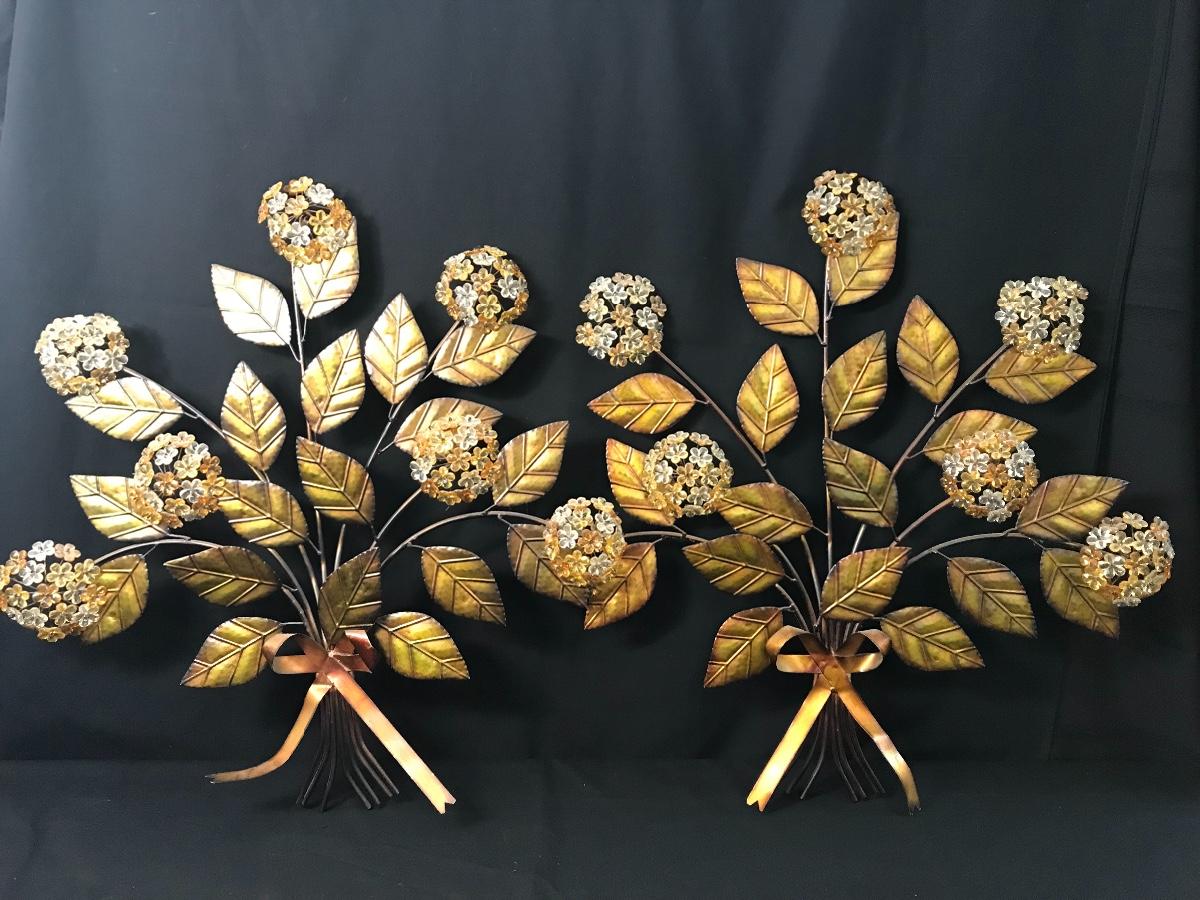 Lot of two large vintage floral wall hanging sculptures. The pictures show condition, measurements if taken, and what is included in the lot. Due to the large amount that we photograph and the time frame, we are not always able to take measurements. All items unless noted, are pre-owned and have been used. If you purchased furniture, you must bring help. We do not allow one person to carry large furniture out on their own. Bring help, tools and a truck for the safety of our client’s homes, and your personal safety. Company policy. Thank you.