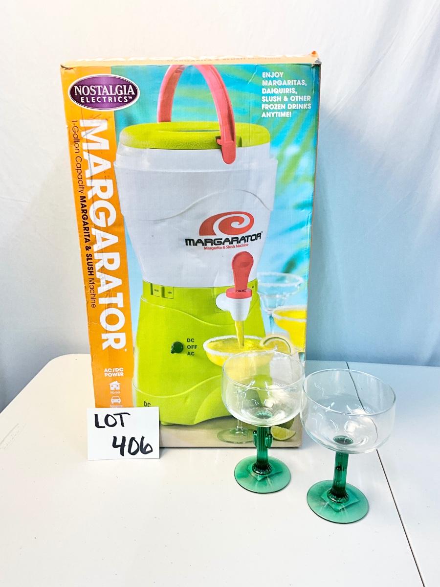 Lot R 406 NIB Margarator - Margarita / Slush Machine & 2 Cactus Margarita Glasses