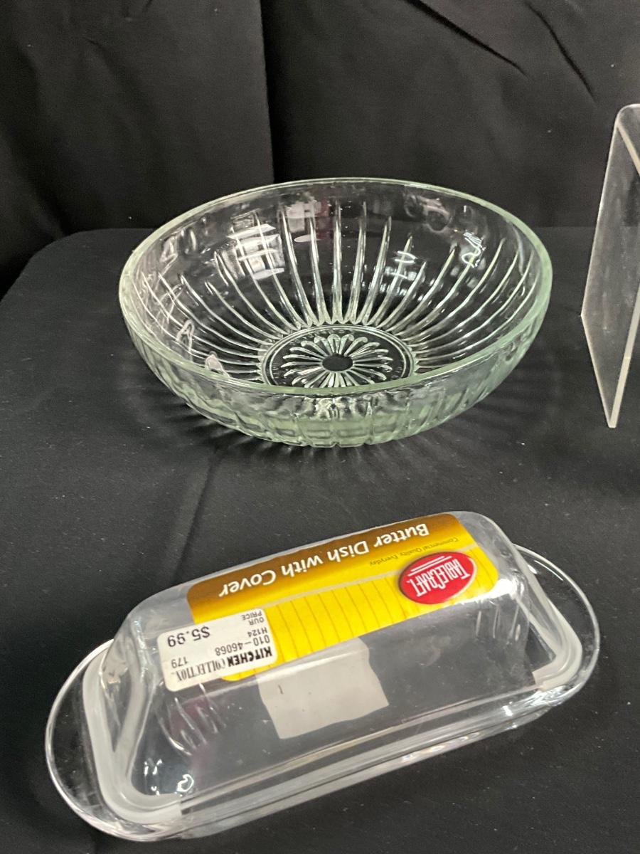 Clear Glass Serving Bowls / Clear Glass Shakers / Creamer / Sugar / Butter Dish