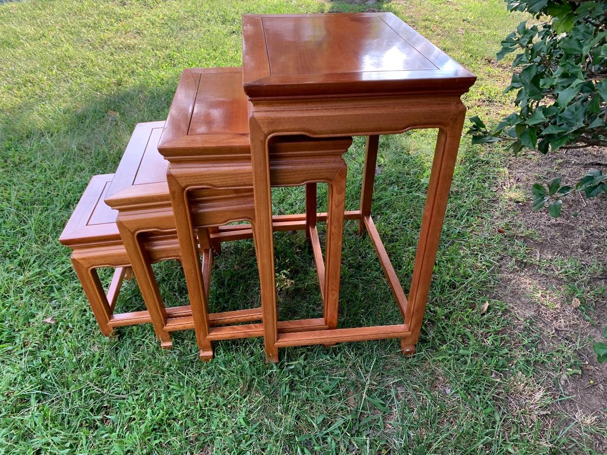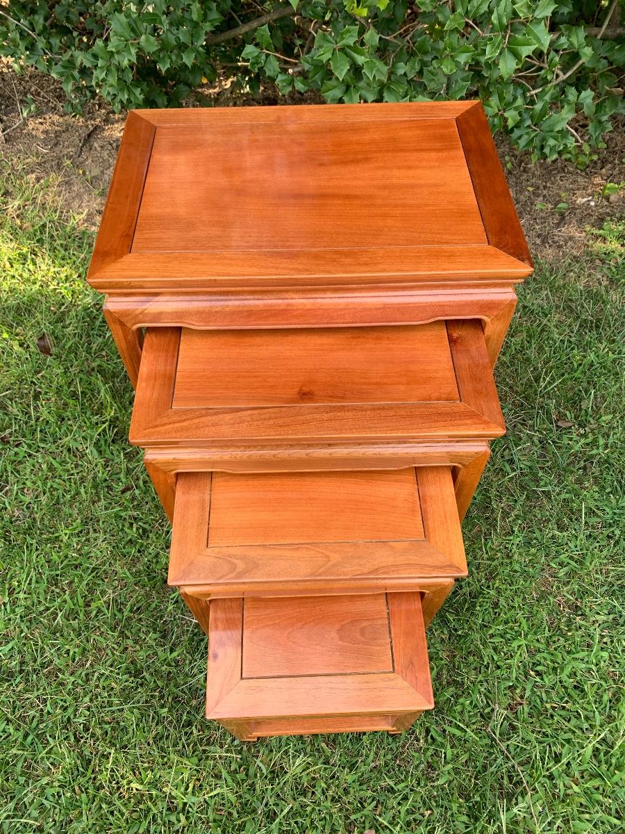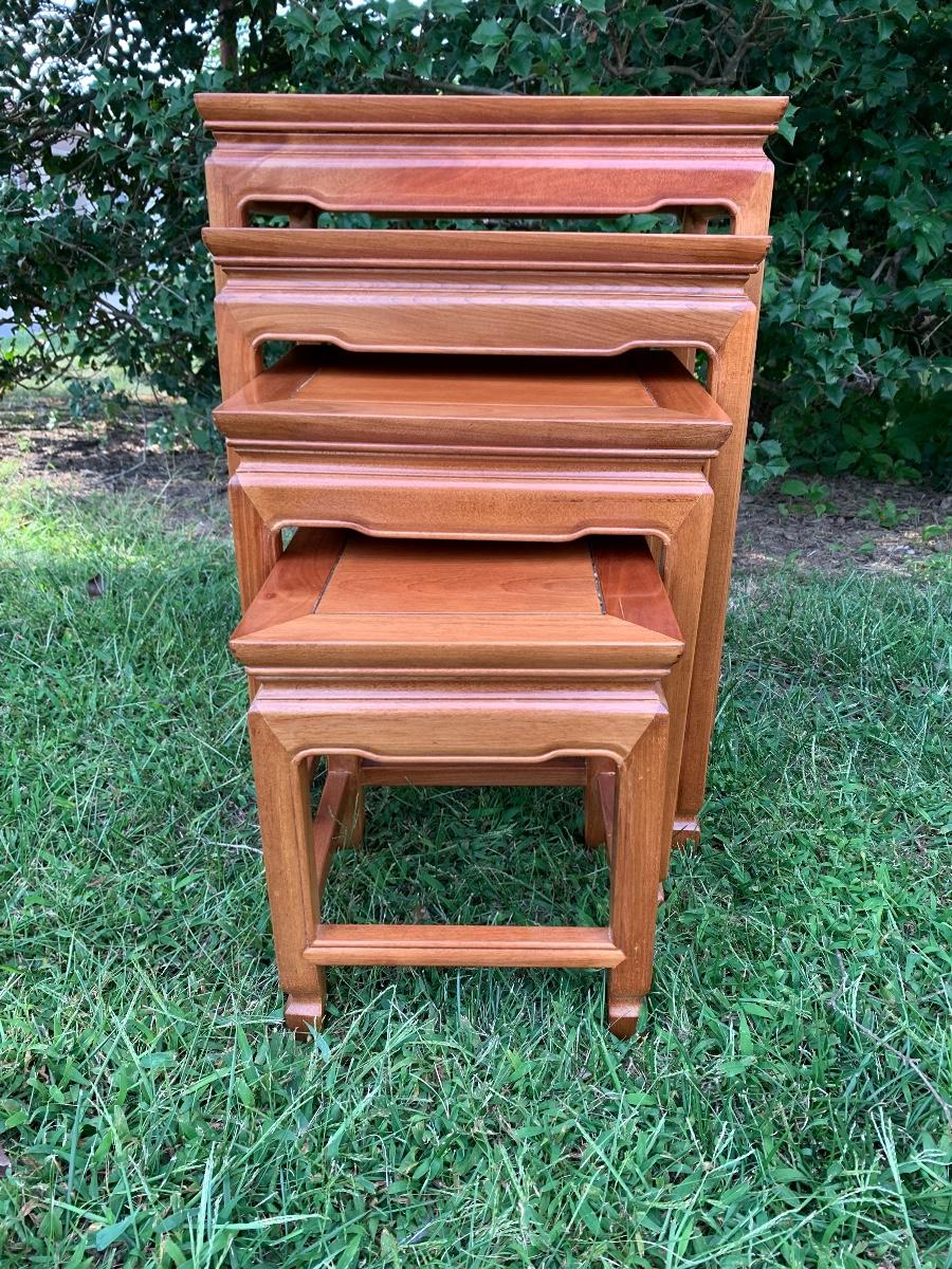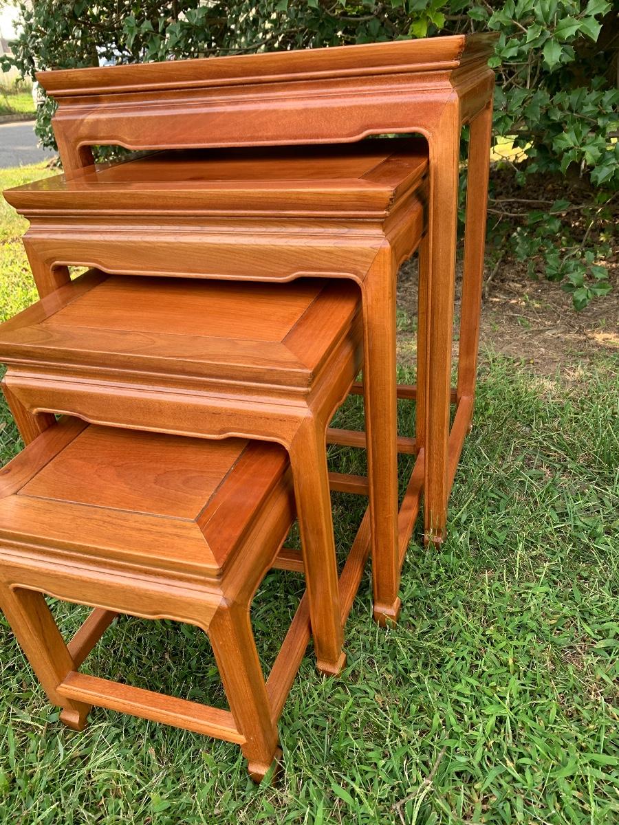 Gorgeous set of four nesting tables to add beauty and functionally to your home. These are wood and still look new. Please see all pictures as they are the best representation of the items. The pictures show condition, measurements if taken, and what is included in the lot. Due to the large amount that we photograph and the time frame, we are not always able to take measurements. All items unless noted, are pre-owned and have been used. If you purchased furniture, you must bring help. We do not allow one person to carry large furniture out on their own. Bring help, tools and a truck for the safety of our client’s homes, and your personal safety. Company policy. Thank you.
