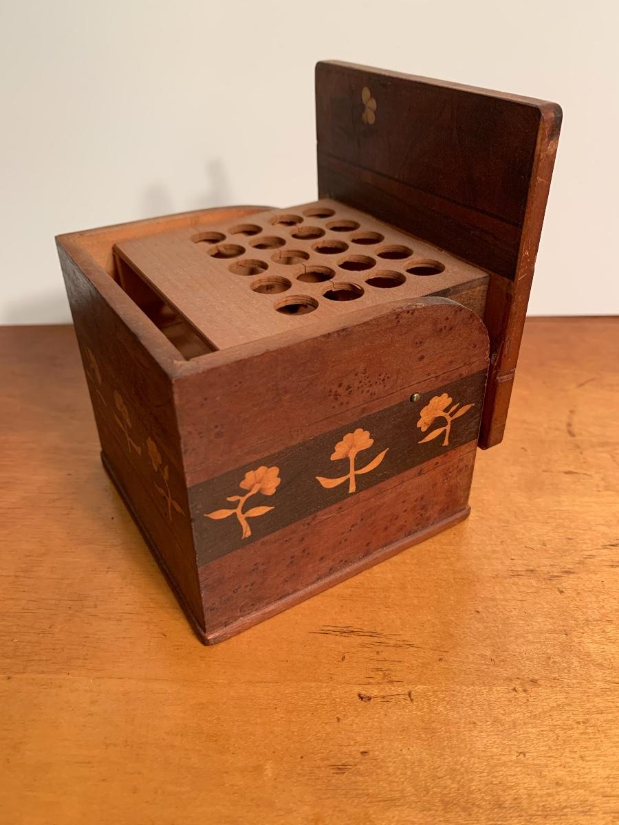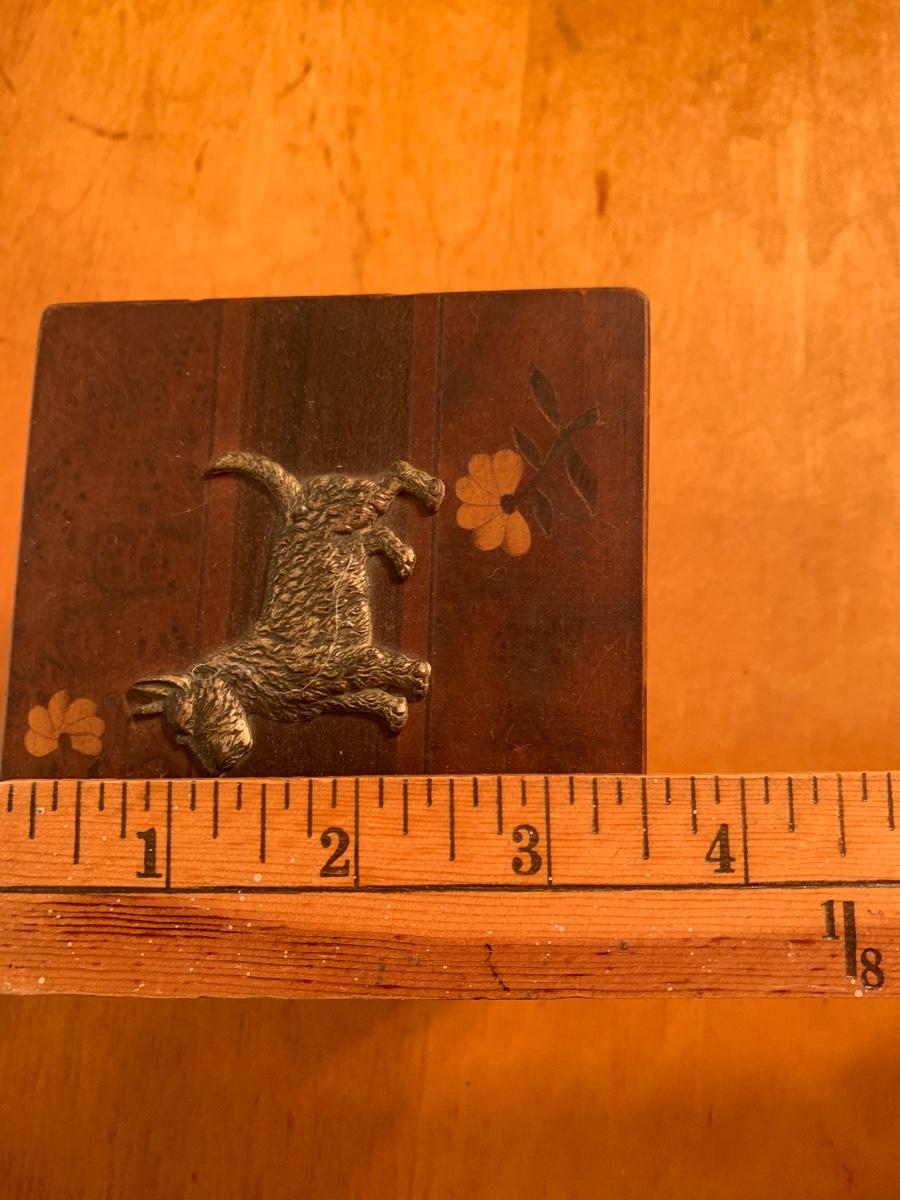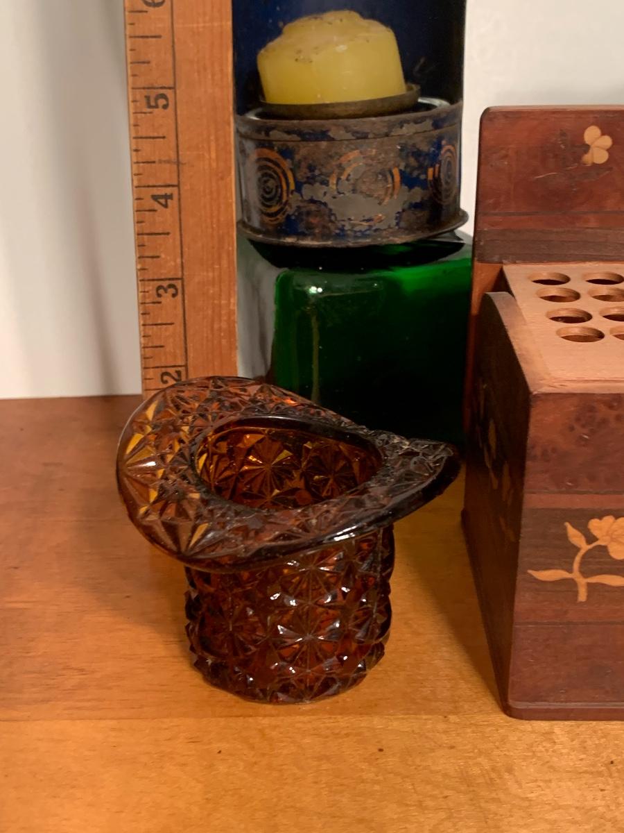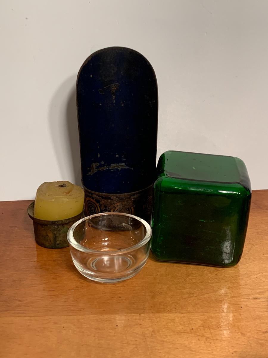 Beautiful lot of vintage/antique items: including Paris Binoculars, a gorgeous wood pencil box with flip top and Scottie Dog on top, a Master Key pitch instrument, and antique tin painted votive holder. Please see all pictures as they are the best representation of the items. The pictures show condition, measurements if taken, and what is included in the lot. Due to the large amount that we photograph and the time frame, we are not always able to take measurements. All items unless noted, are pre-owned and have been used. If you purchased furniture, you must bring help. We do not allow one person to carry large furniture out on their own. Bring help, tools and a truck for the safety of our client’s homes, and your personal safety. Company policy. Thank you.