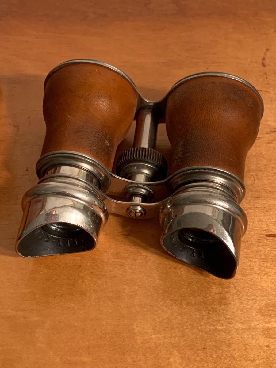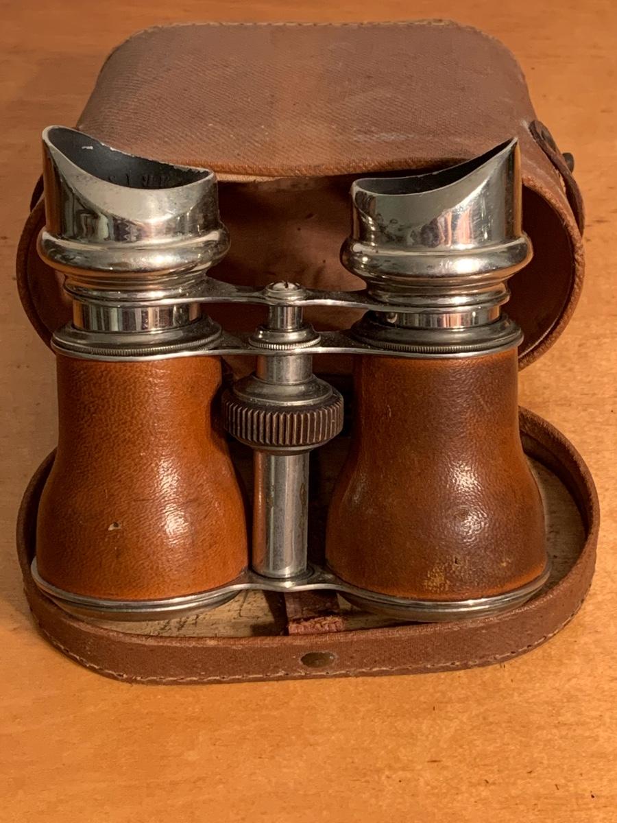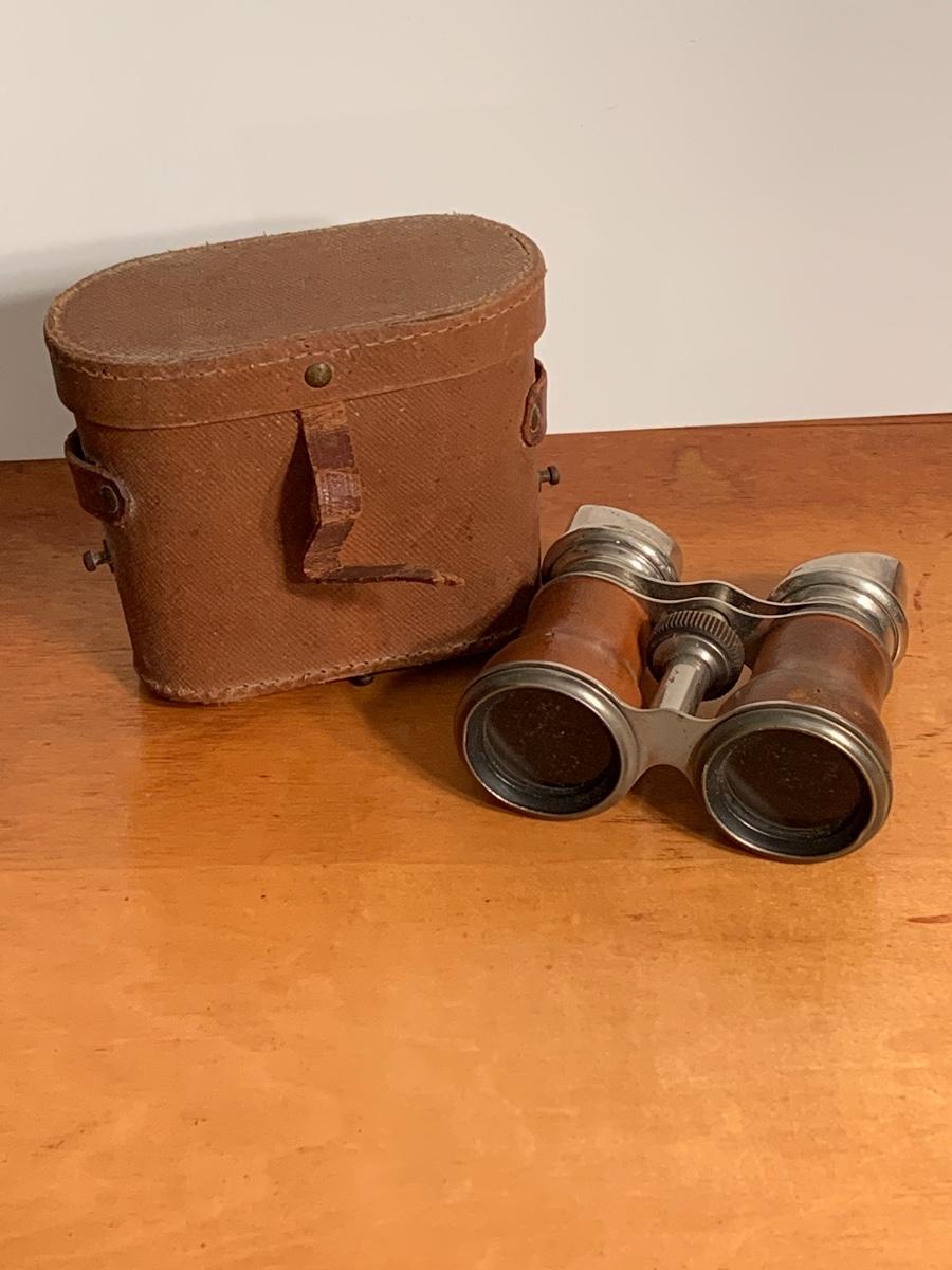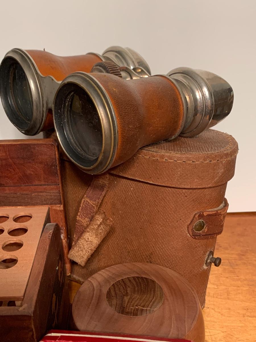 Lot 138: Antique Leather Paris Binoculars, Blown Glass Cube and More