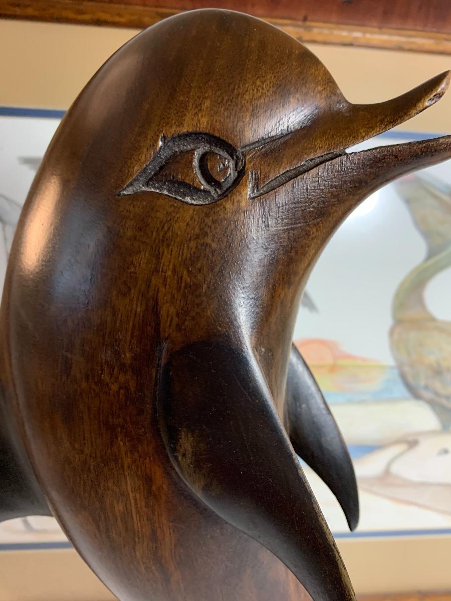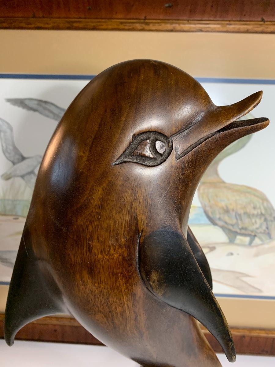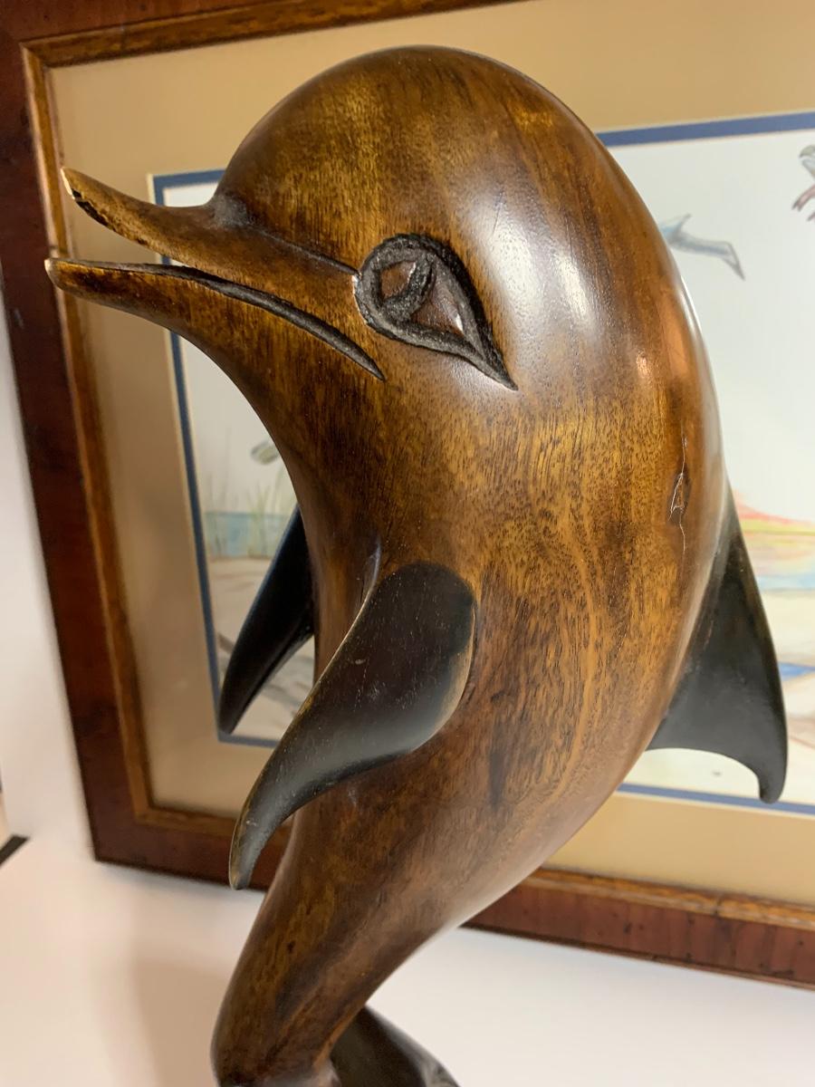 Lot 76: Vintage Signed Print, Large Wood Carved Dolphin & More