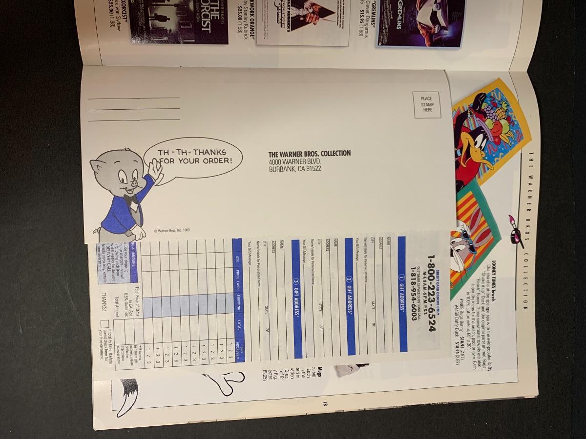 Vintage Warner Brother Catalog and various Warner Bros. Glasses