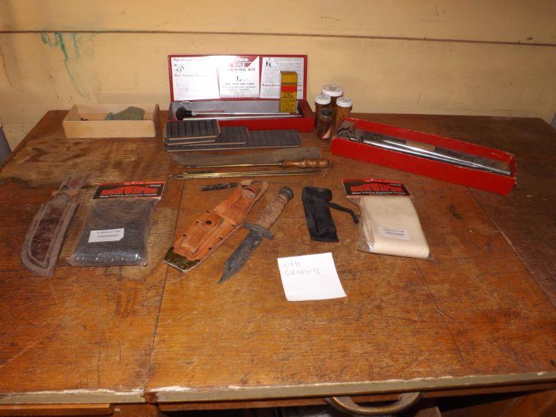 LOT 410 RIFLE CLEANING KITS & KNIFE
